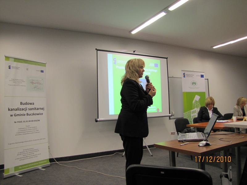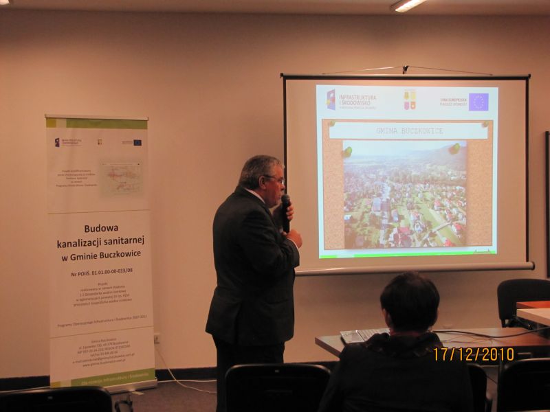 17 grudnia 2010 r. Prezentacja projektu "Budowa kanalizacji sanitarnej w Gminie Buczkowice" podczas Konferencji "Stan wdrażania POJiŚ w zakresie ochrony środowiska na terenie województwa śląskiego"