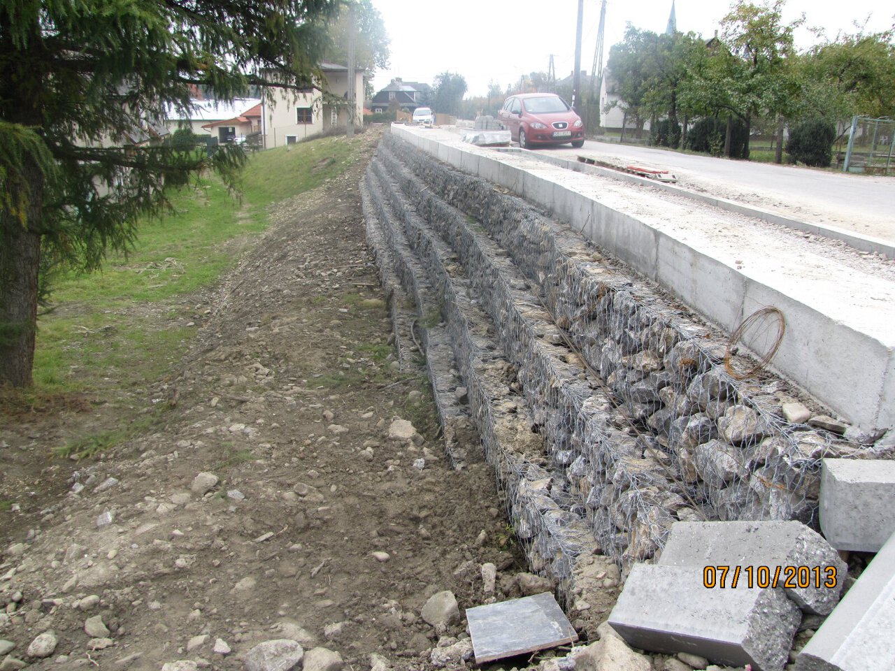 Roboty budowlane w zakresie projektu zostały wykonane w roku 2013 ze środków własnych gminy, w ramach projektu przebudowano drogę powiatową na długości 704mb, wybudowano 713mb kanalizacji deszczowej oraz 713mb chodnika dla pieszych.