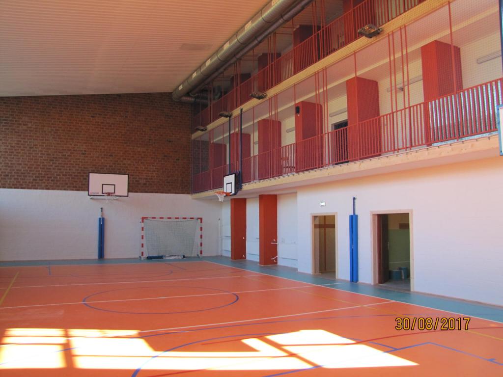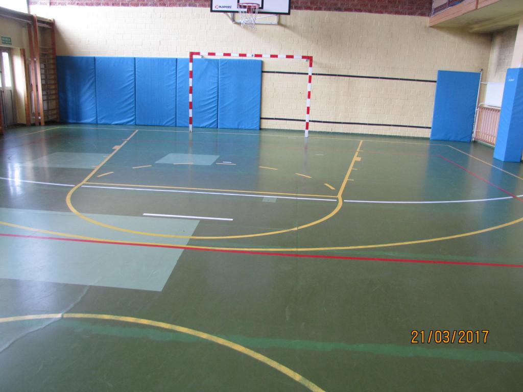- wykonanie remontu sali w tym: wymiana podłogi, roboty malarskie, montaż balustrad i urządzeń sportowych.