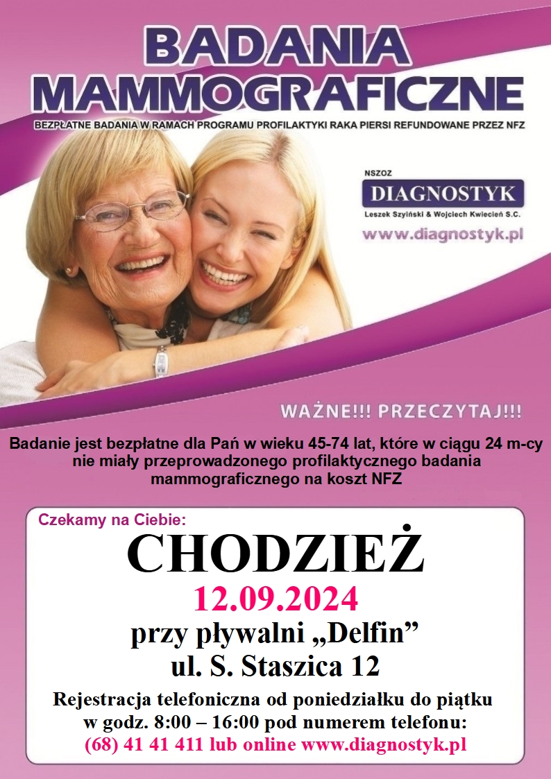 Bezpłatne badania mammograficzne (WRZESIEŃ) - CHODZIEŻ