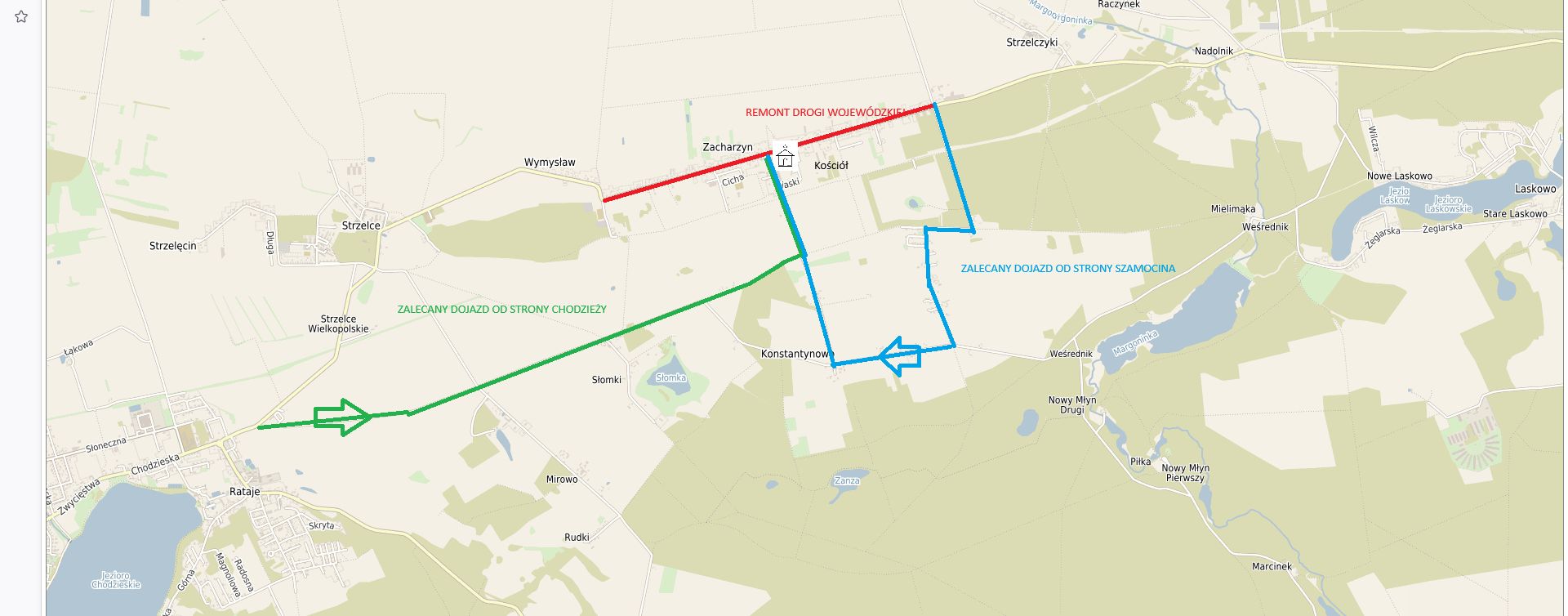 Dojazd do kościoła w Zacharzynie