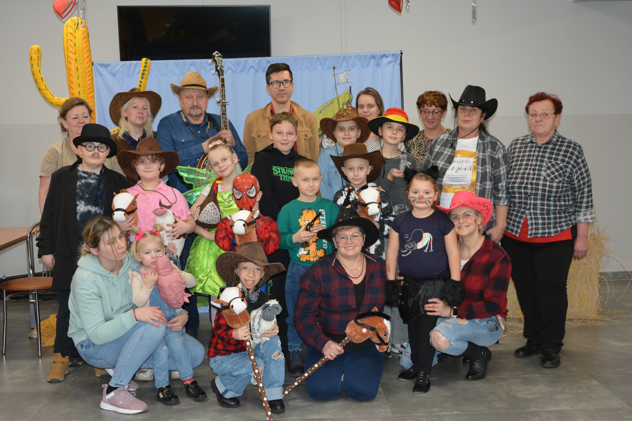 Innego rodzaju tematyką zajęto się w czwartkowe popołudnie. Tego dnia dzieci uczestniczyły w warsz-tatach recyklingu pod hasłem „Nie marnuję - odzyskuję!”. O śmieciach i recyklingu nigdy dość informacji i również dzień poświęcony tej tematyce można zaliczyć do udanych i pożytecznych. Ferie w Stróżewicach zakończyło piątkowe przedstawienie interaktywne pt. Western story a na finał bal karnawałowy z Agą Jagą.