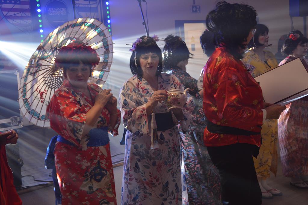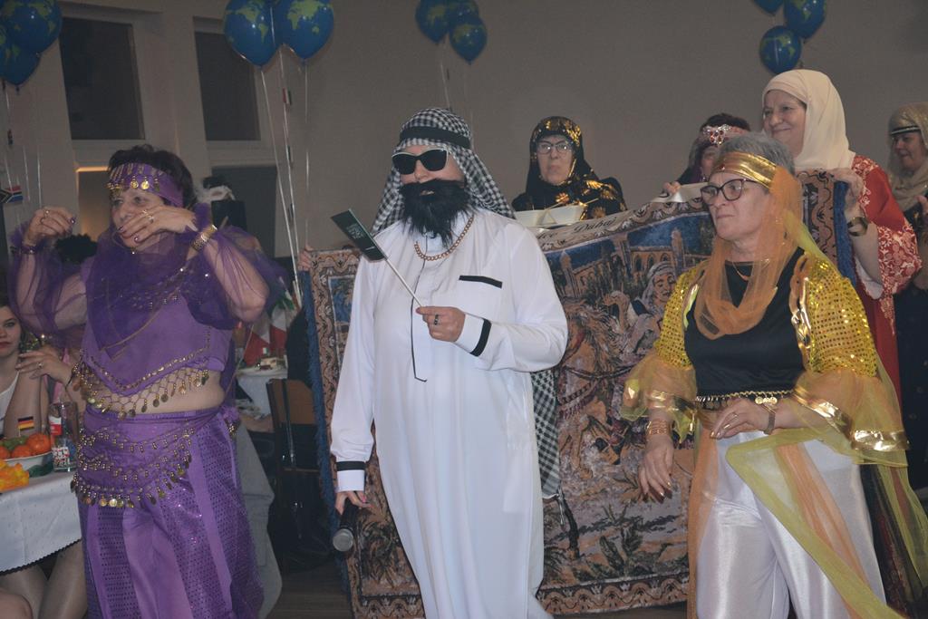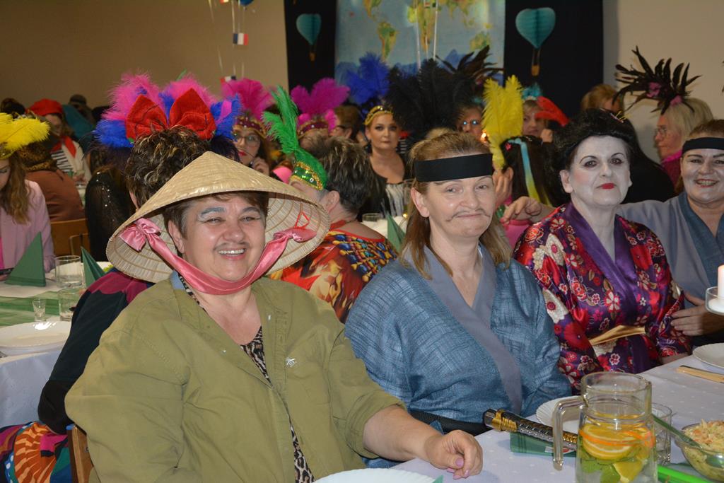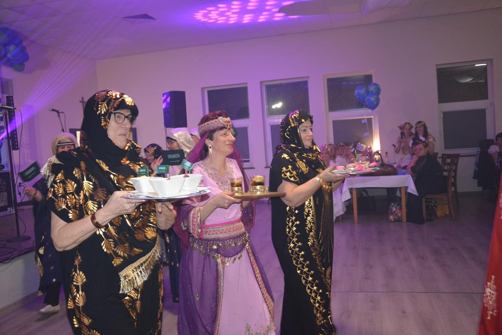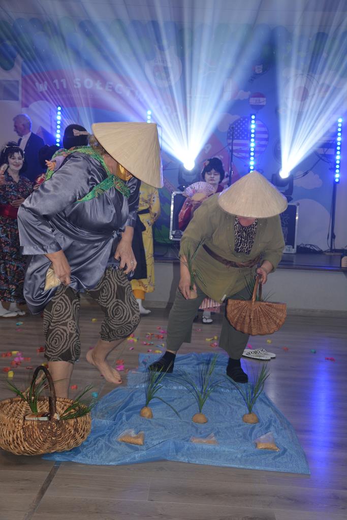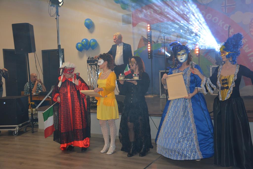 Świetnie przemyślane spotkanie to kolejny krok w kierunku integracji gminy. Tym razem władze gminy nawiązały do spotkania sprzed 3 lat pn. babski comber - głośnej wówczas poświęconej epoce średniowiecza imprezy, którą dosłownie na kilka dni przed ogłoszeniem pandemii udało się zorganizować. Teraz zamysł pomysłodawców był nieco inny, choć miał także równie edukacyjny charakter. 11 sołectw gminy uczestniczyło wcześniej w losowaniu, które decydowało jaki region lub kraj będą prezentowały. Efekty przeszły najśmielsze oczekiwania. W sali nie było nikogo(!), który by nie był ucharakteryzowany za mieszkańca, którejś z tych najbardziej malowniczych i popularnych destynacji. Zanim jednak zaczęły się prezentacje poszczególnych sołectw, do sali przygalopowała grupa kowbojek z jedną Indianką w efektownym pióropuszu, którą okazała się być wójt gminy i pomysłodawczyni imprezy Kamila Szejner.