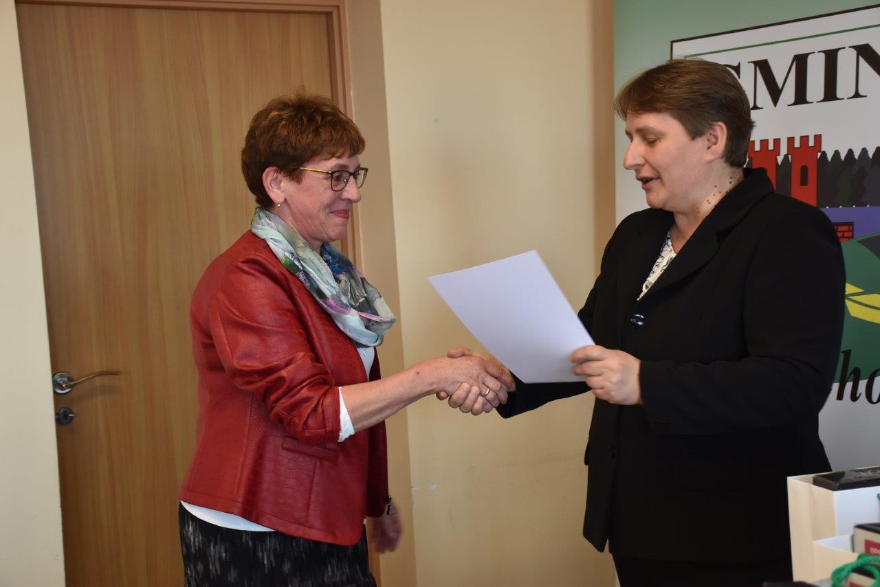 Dalej pani wójt w asyście Ewy Kubiś przystąpiła do wręczania nagród i dyplomów.