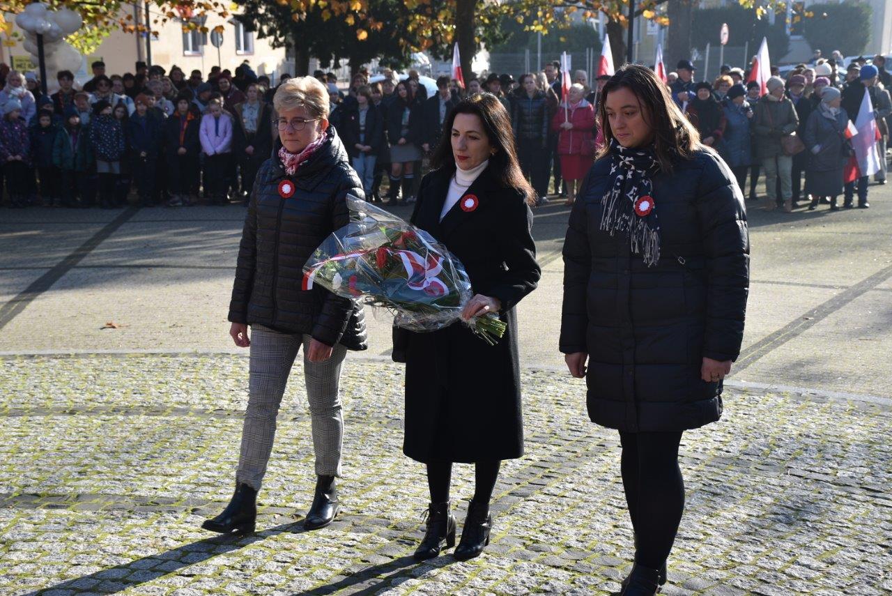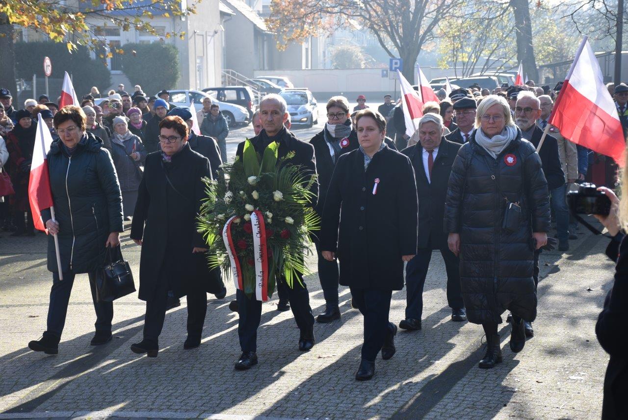 Kwiaty pod pomnikiem przy dźwiękach werbla złożyli przedstawiciele kilkudziesięciu delegacji, wśród nich włodarz gminy Chodzież - Kamila Szejner wraz z radnymi oraz przedstawiciele szkół z terenu gminy. Część oficjalną zakończyło wspólne odśpiewanie Roty. Następnie burmistrz zaprosił na sponsorowane przez miasto kawę i rogale Marcińskie.