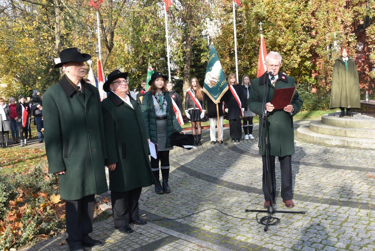 Następnie głos zabrał starosta Mirosław Juraszek, który w towarzystwie członka Zarządu Województwa Wielkopolskiego Jacka Bogusławskiego i nowo wybranego posłana Sejm RP Piotra Głowskiego, wręczył odznaki ,,Zasłużony dla Województwa Wielkopolskiego" dwom szanowanym chodzieskim obywatelom - Jerzemu Tarkowskiemu oraz Markowi Piotrowskiemu. Głos zabrał także ks. Krystian Molecki z parafii św. Floriana, który zaprosił do krótkiej modlitwy za dusze poległych patriotów.