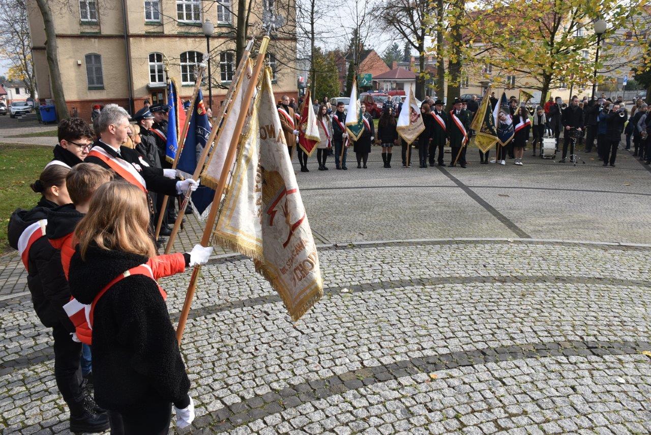 Czwartkowe uroczystości z okazji 103 rocznicy odzyskania przez Polskę niepodległości zainaugurowała msza św. w intencji Ojczyzny, w kościele pw. św. Floriana. Po jej zakończeniu wierni tradycyjnie kolumną ze sztandarami i biało czerwonymi flagami przeszli pobliskimi ulicami do parku przy Urzędzie Miejskim, gdzie znajduje się chodzieski pomnik.