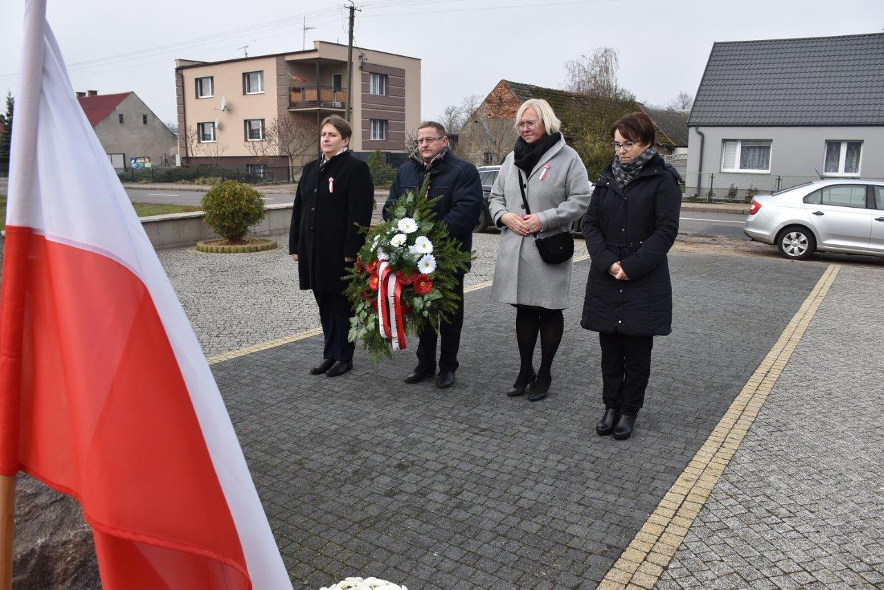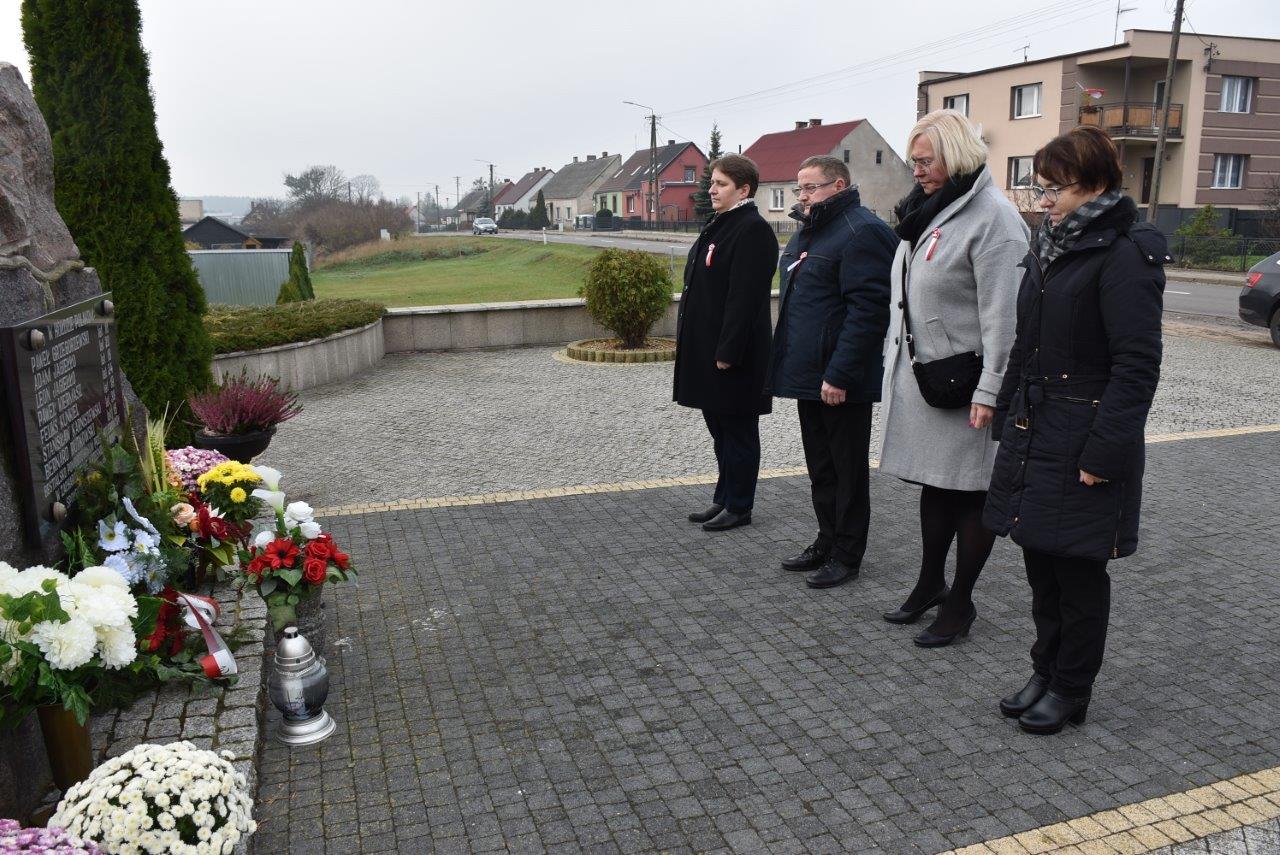 Dzień 11 listopada to także okazja do złożenia kwiatów w miejscu tragedii, do której doszło we wrześniu 1939 roku w Zacharzynie, gdzie hitlerowscy siepacze zamordowali 7 polskich obywateli. W tym roku również pod pomnikiem w Zacharzynie pojawiła się delegacja władz gminy z radnymi Rady Gminy Anną Ślesińską-Nowak i Krzysztofem Sobalą. Podobnie, jak w Chodzieży złożeniu kwiatów towarzyszyła chwila zadumy.