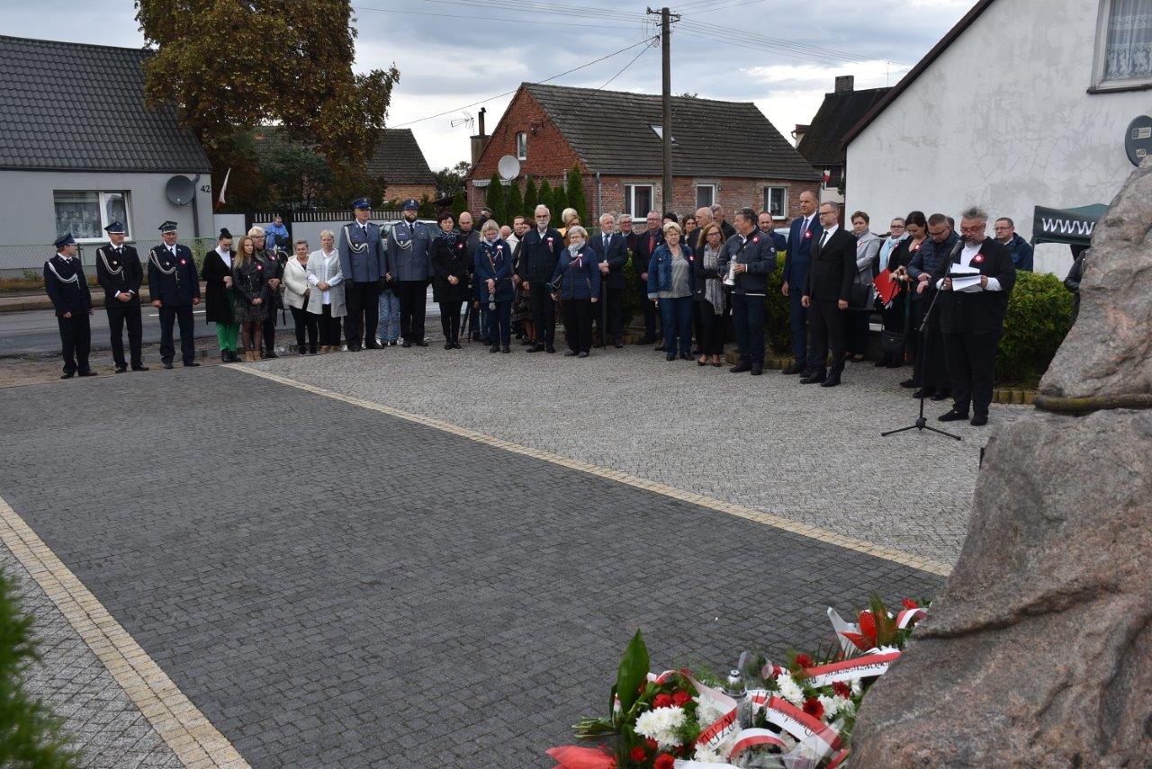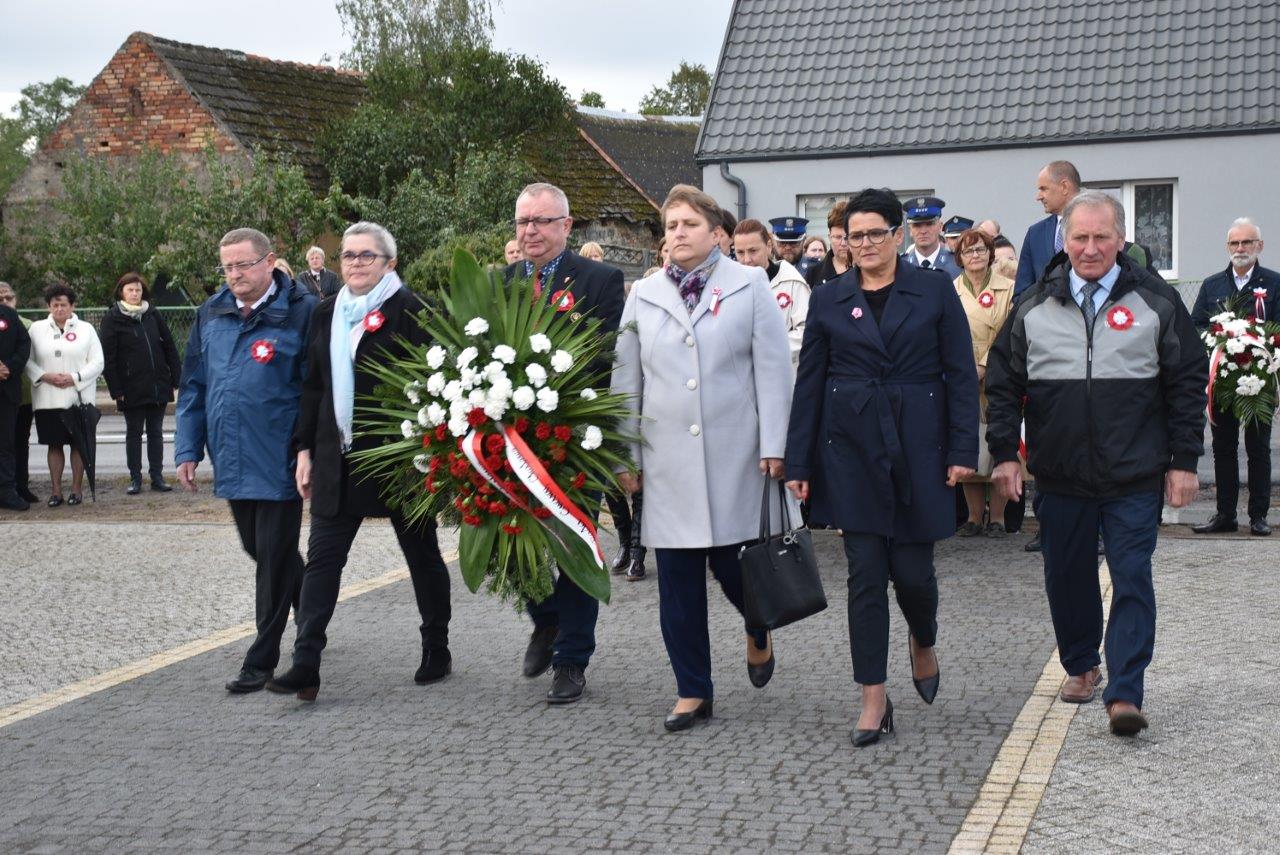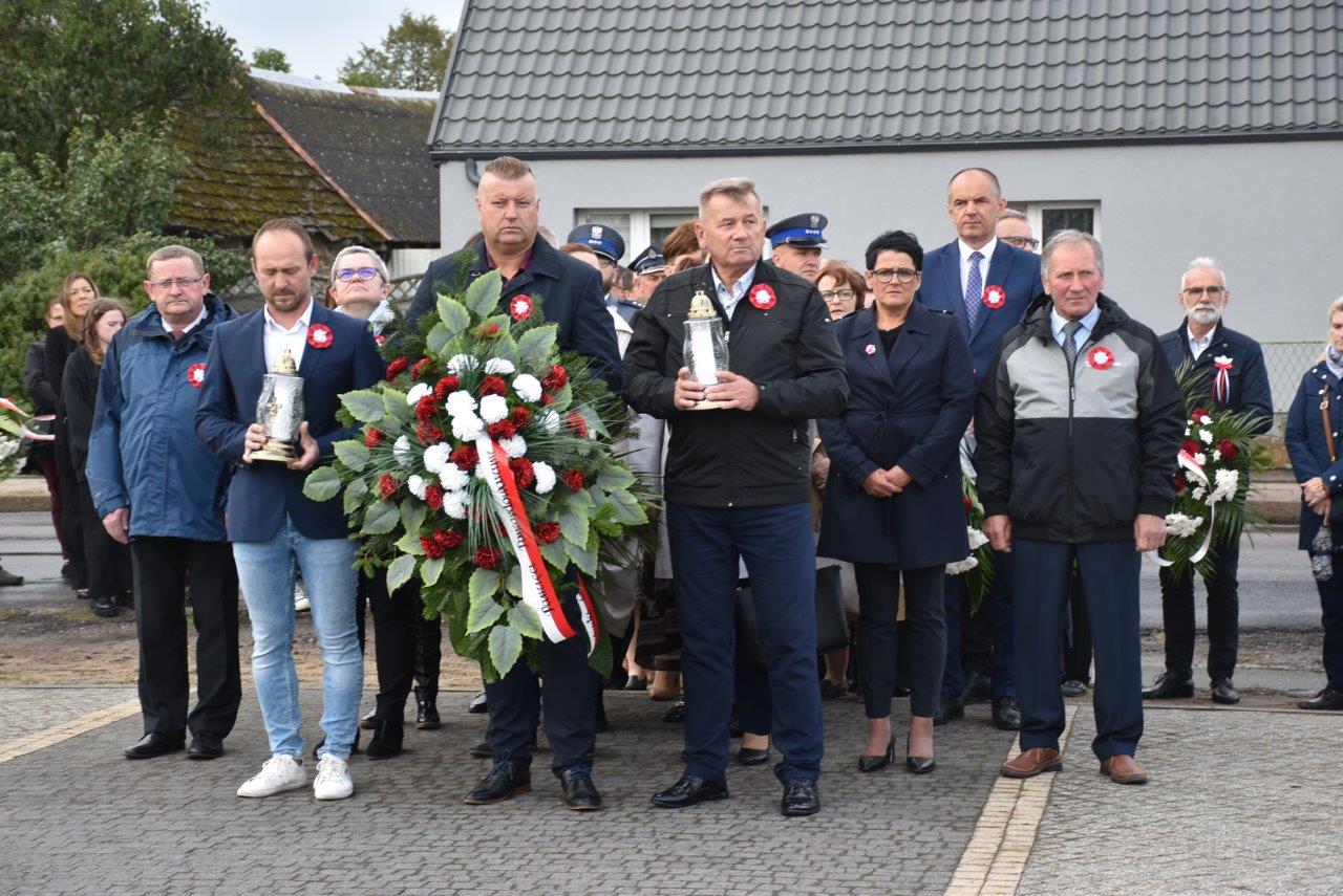 Uroczystość rozpoczęła się od odegrania hymnu i wprowadzenia sztandaru. Wielkie wrażenie na przybyłych wywarła relacja jaką po wojnie złożył jeden z oprawców, który najpierw przesłuchiwał, a potem z zimną krwią zastrzelił dwójkę Polaków. Pamięć o tej tragedii do dziś jest ciągle żywa szczególnie wśród rodzin zabitych.