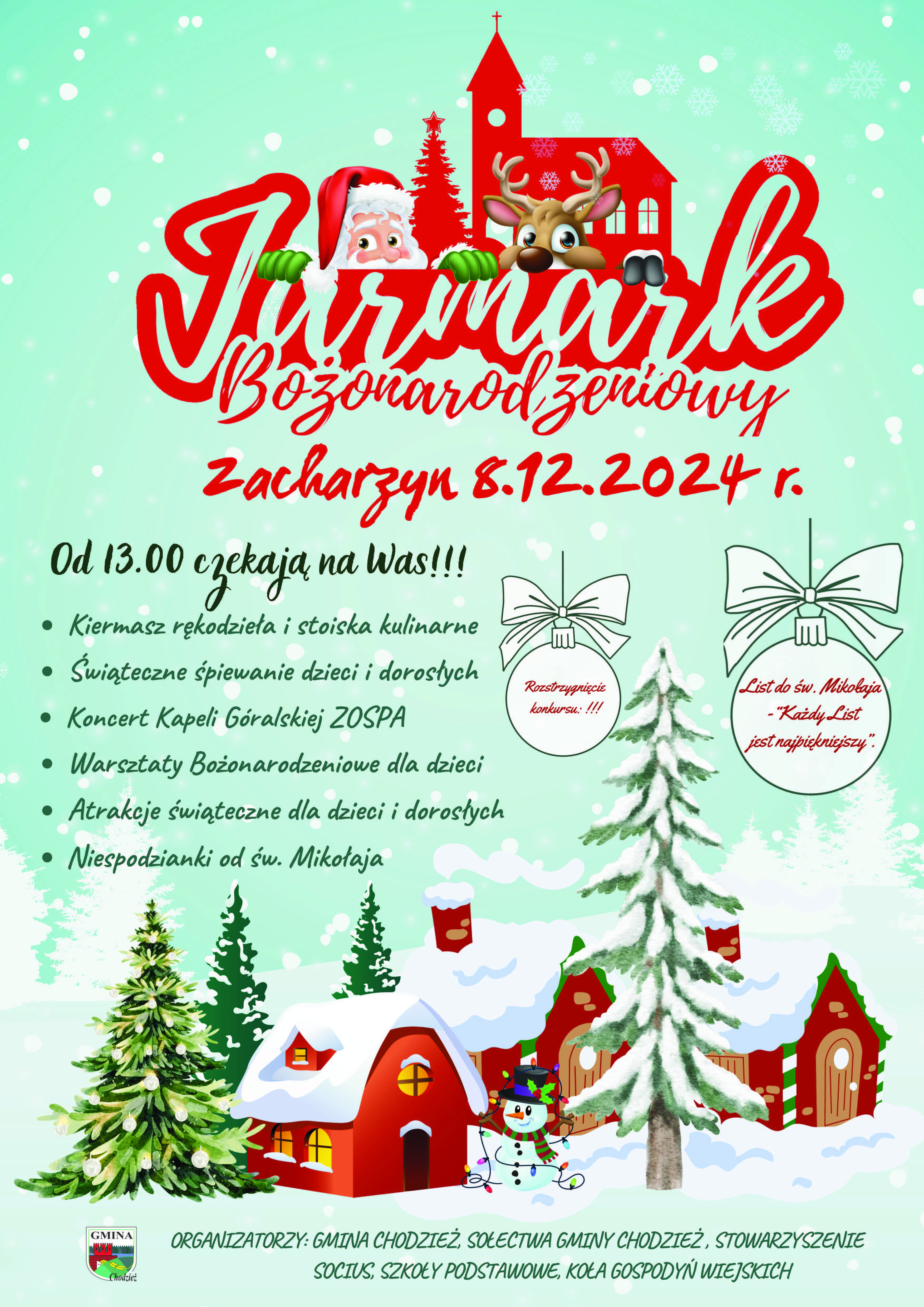 .Plakat informacyjny jarmark bożonarodzeniowy Zacharzyn 8.12.2024r