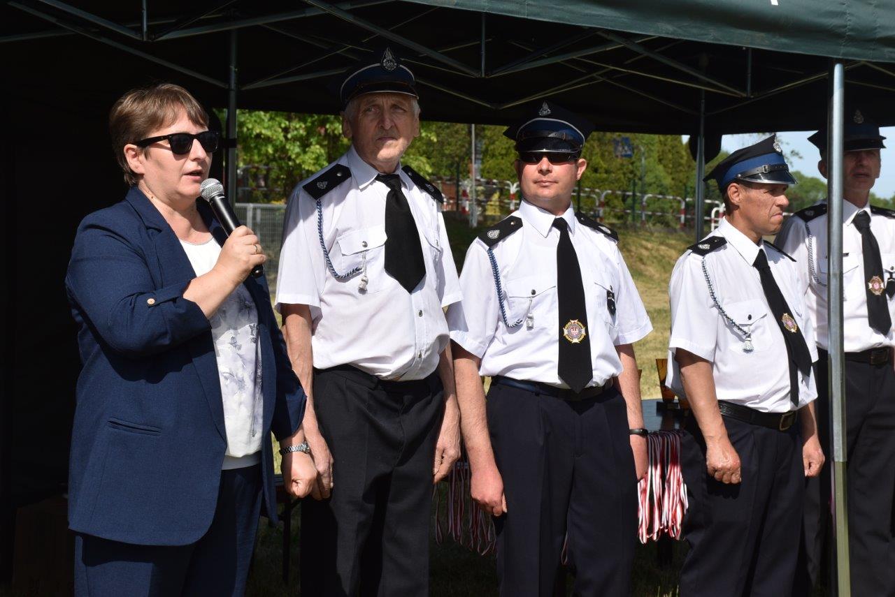 Zawody rozpoczęły się od złożenia meldunku przez prowadzącego zbiórkę dowódcę zawodów. Następnie głos zabrała wójt gminy Kamila Szejner oraz burmistrz miasta Jacek Gursz. Pani wójt, której towarzyszyła przewodnicząca rady Ewa Śliwińska życzyła zawodnikom owocnych zmagań w osiągnięciu celów i znakomitych czasów, które będą świadczyć o dobrym wyszkoleniu młodych strażaków.