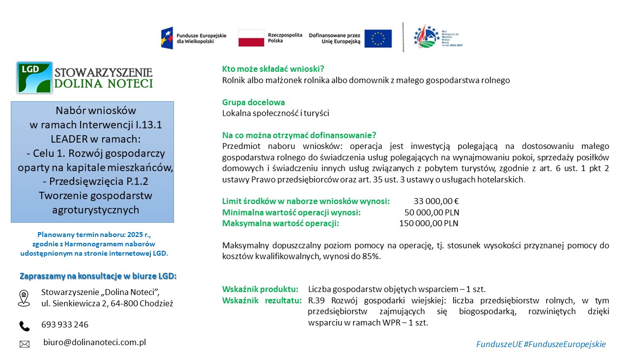 Nabór wniosków w ramach interwencji I.13.1 LEADER