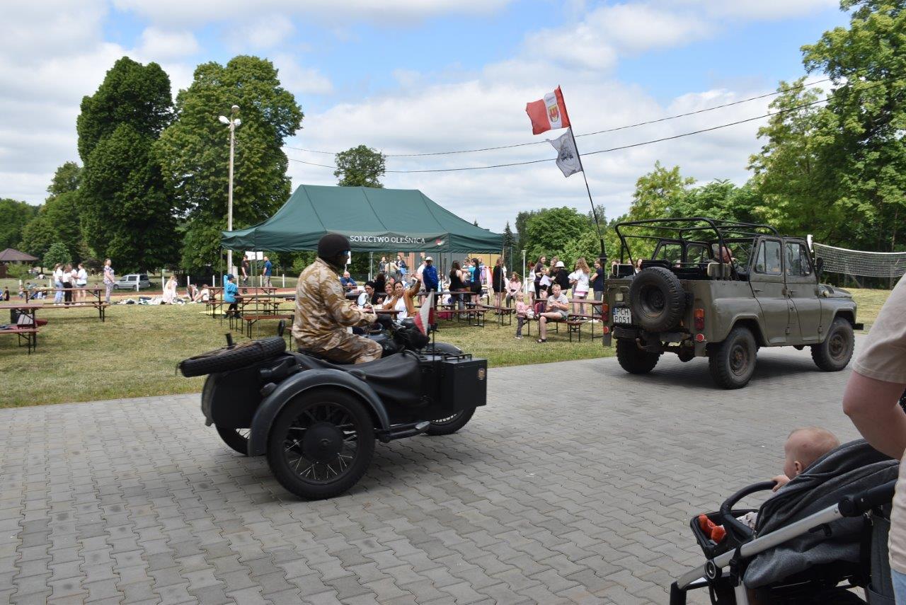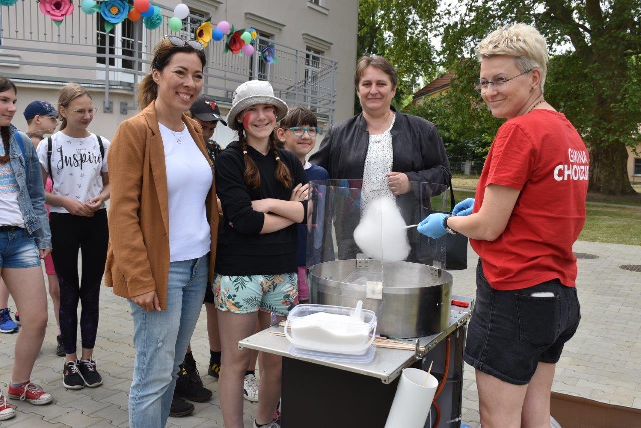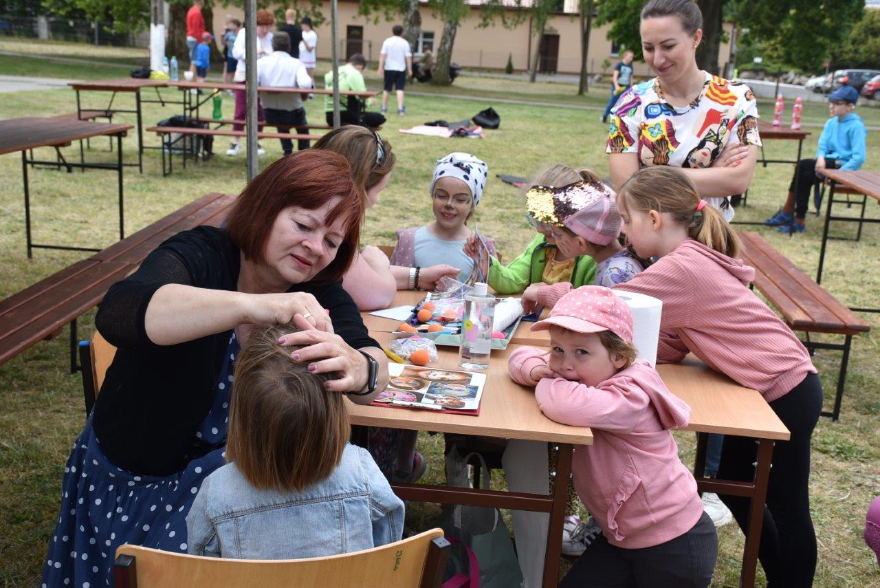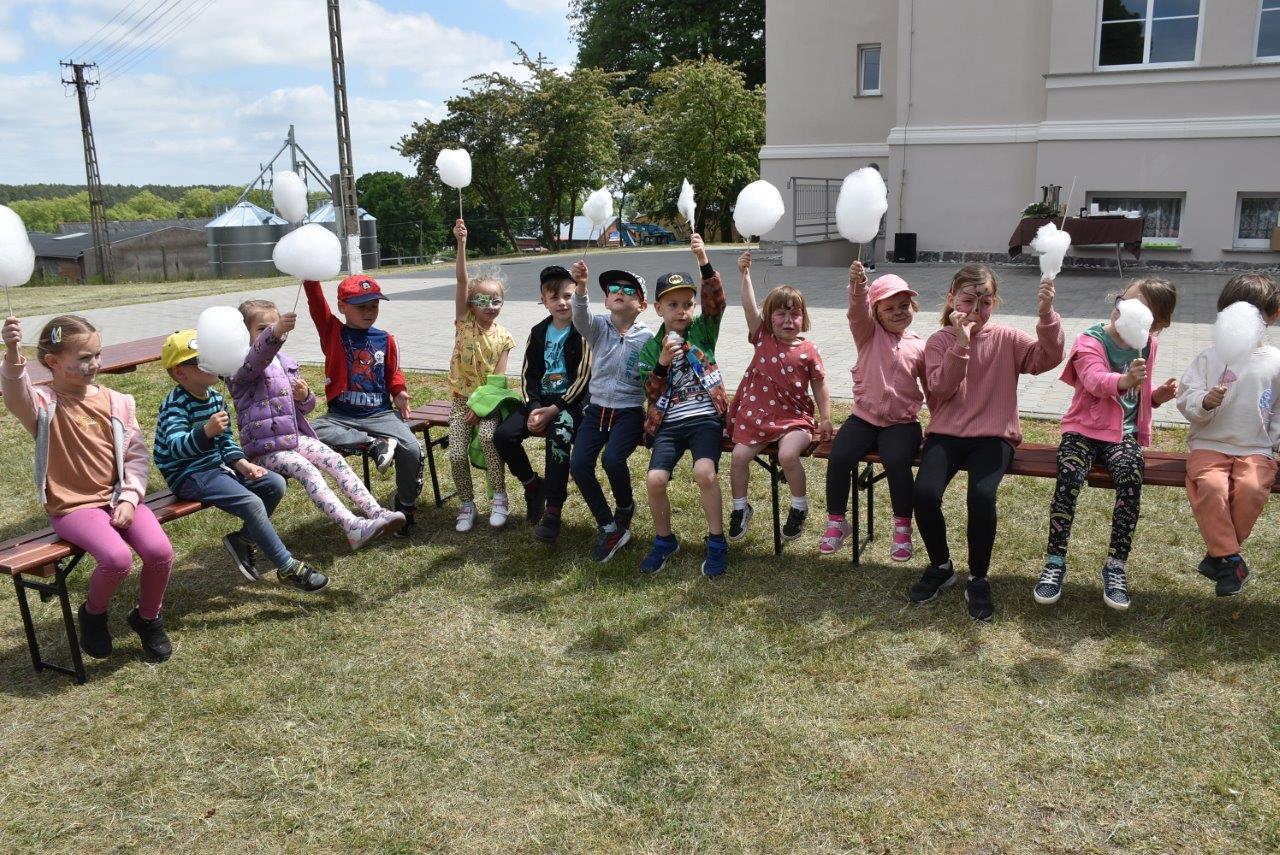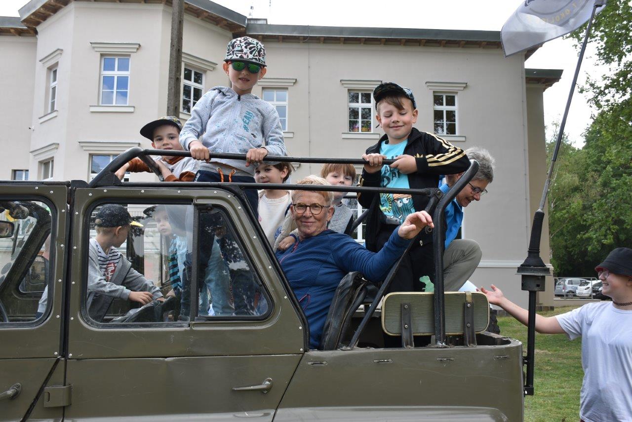W czwartek 1 czerwca na terenie przy SP mieszczącej się w wyremontowanym pałacu uczniowie ich rodzice, grono nauczycielskie a także mieszkańcy wsi i zaproszeni goście skrzyknęli się na pierwsze w tym roku prawdziwie letnie spotkanie. Już przed godziną jedenastą ruszyła maszyna z produkcją waty cukrowej a wszelkiej maści pojazdy wojskowe i motocykle oferowały przejażdżki po otaczającym pałac parku. A że pomysłów, dobrego humoru i co najważniejsze chęci uczestnictwa nie brakowało, zabawa przeciągnęła się do godzin popołudniowych.