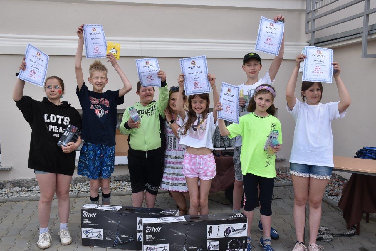 Tymczasem trwało już współzawodnictwo na boisku szkolnym (m. in. w meczu uczniowie - ojcowie lepsi okazali się ci drudzy) oraz serwowano atrakcje, których próżno szukać w dni powszednie. Kolejka chętnych ustawiła się m. in. do malowania twarzy i plecenia warkoczyków, a w najdalszym bezpiecznym zakątku parku przygotowywano grill i kiełbaski z rożna. Równolegle z udziałem samorządowców rozstrzygnięto kilka szkolnych konkursów. I tak w III edycji Szkolnego Konkursu Kulinarnego "MasterChef" przeprowadzonego pod opieką nauczycielki Anny Budych pierwsze miejsce zajął - Jacek Dahlke z kl. 5, druga była Antonina Budych kl. 3, a trzecie miejsce zajęła Zofia Borkowska z kl. 5.