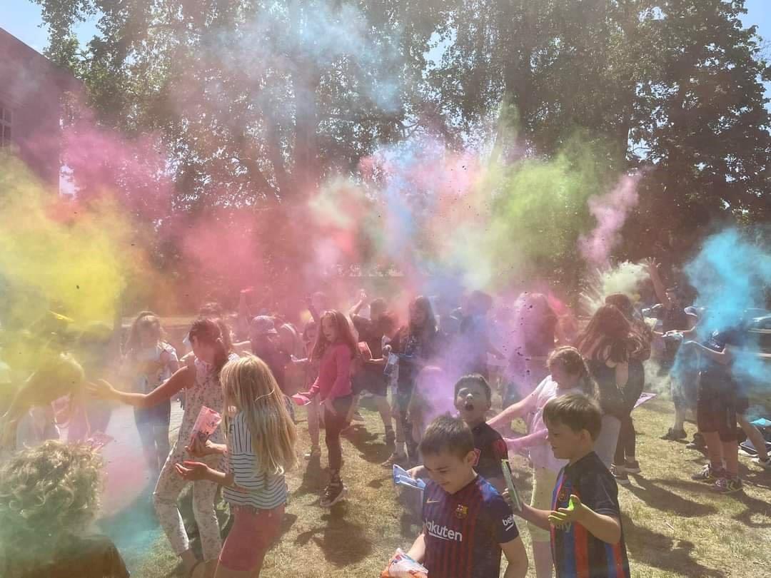 Jednak prawdziwym finałem szkolnej imprezy okazała się zabawa z kolorowym proszkiem Holly. W atrakcji tej, którą można by nazwać szkolnym festiwalem kolorów wzięła udział spora część uczniowskiej społeczności. Zabawa polegała na tym, że z chwilą kiedy tańczącym uczniom wyłączono muzykę ci podrzucali barwne proszki do góry… W ten sposób nad ich głowami tworzyły się chmury i fantastyczne kaskady kolorów. Zabawę poprowadziła Pani dyrektor szkoły Joanna Maćkowiak.