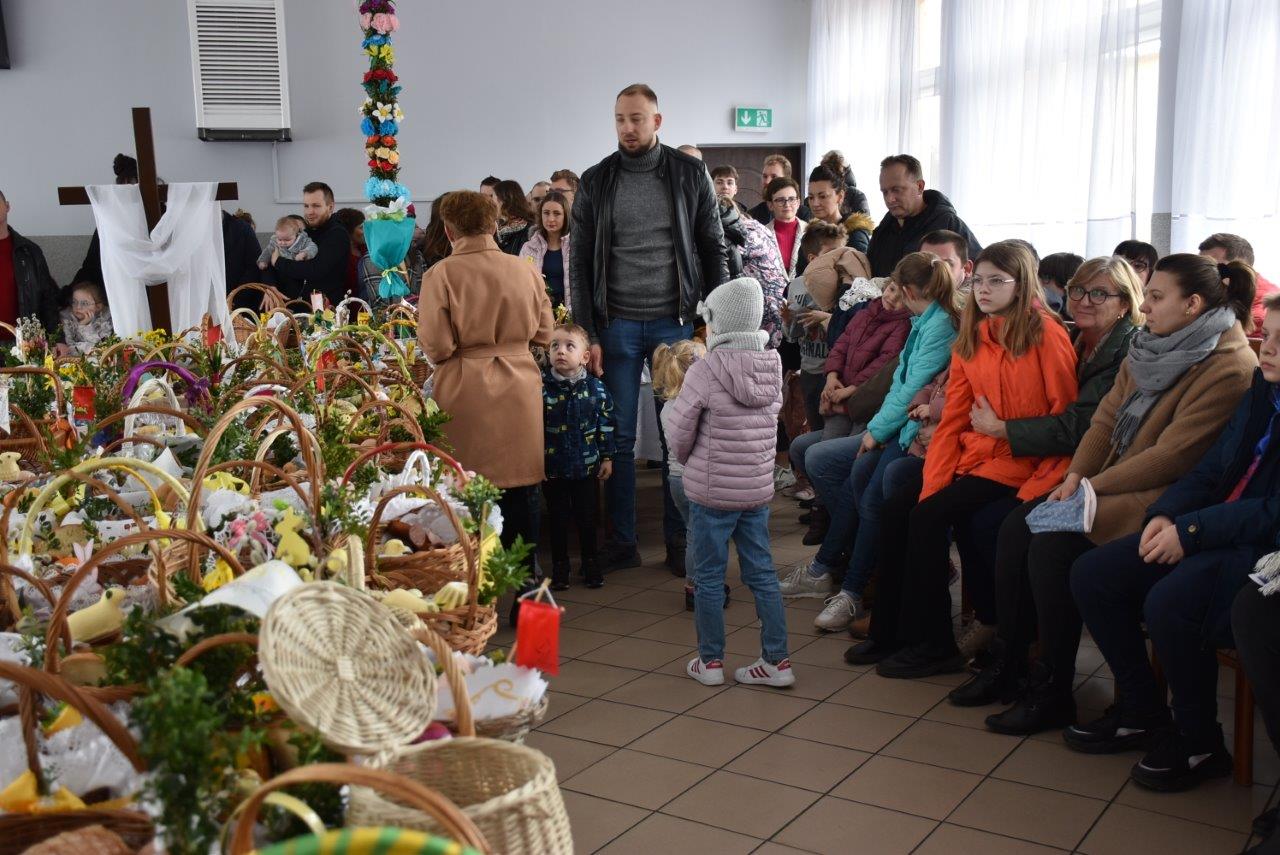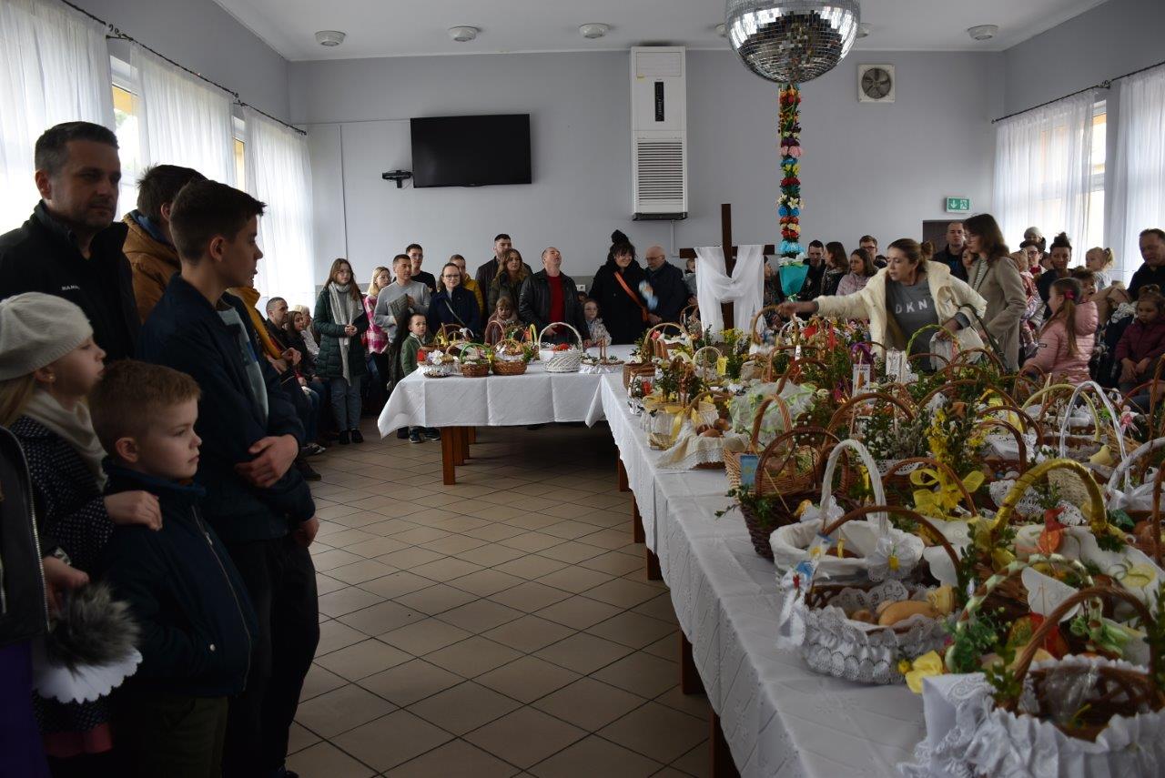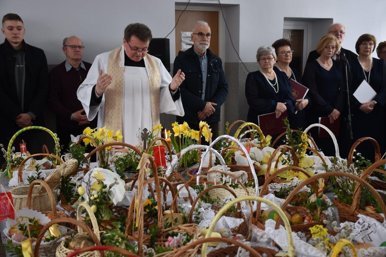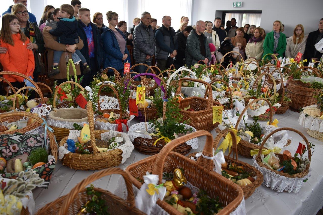 To w już nie tylko Ratajach, ale w gminie wieloletnia tradycja. Dziesiątki, jeśli nie więcej koszyczków - święconek ledwie pomieściły się na wielkim stole, który w tym celu ustawiony został na środku sali. Całość wieńczył krzyż opleciony woalem oraz wysoka na 2 metry palma. Coraz liczniejszy tłum oczekiwał na przybycie ks. Jana Korygacza proboszcza parafii Nawiedzenia NMP w Chodzieży. Wśród mieszkańców nie mogło zabraknąć wójta gminy (mieszkanki Rataj) Kamili Szejner, radnych rady gminy i sołtysa wsi Teresy Soch.