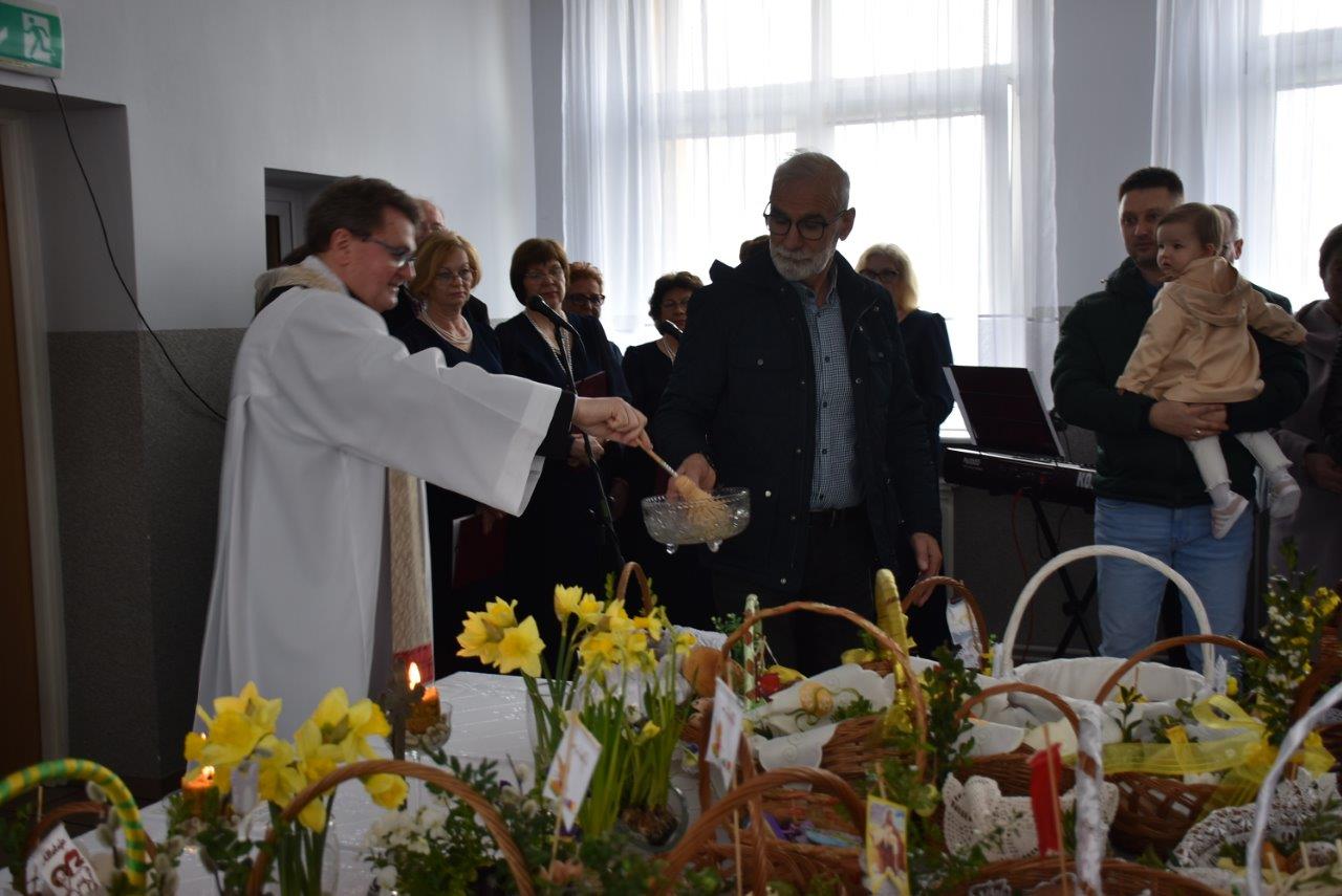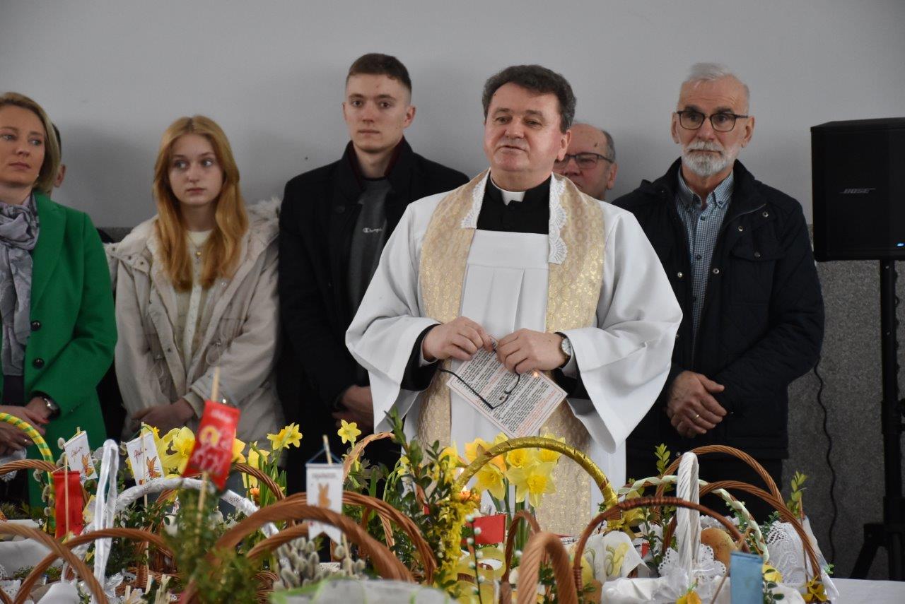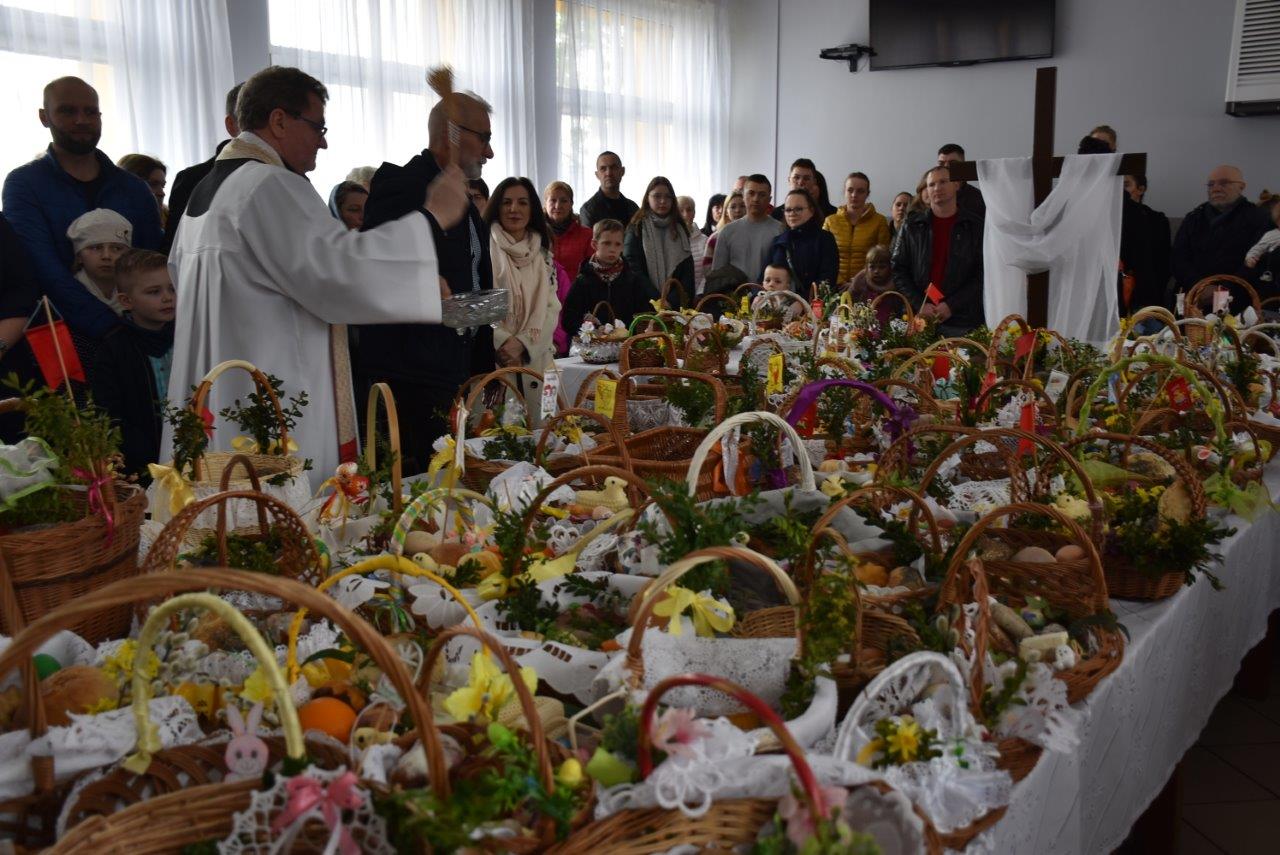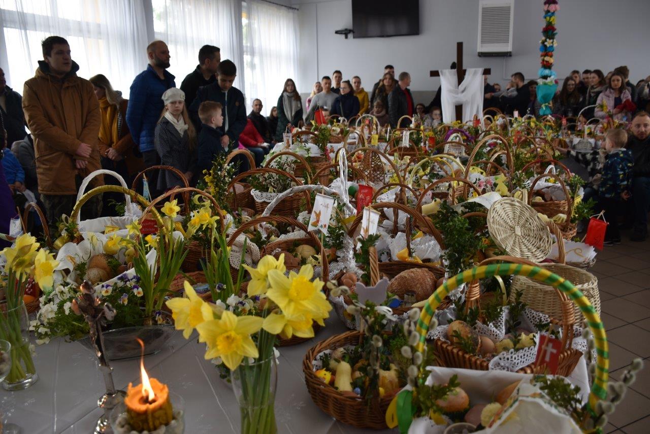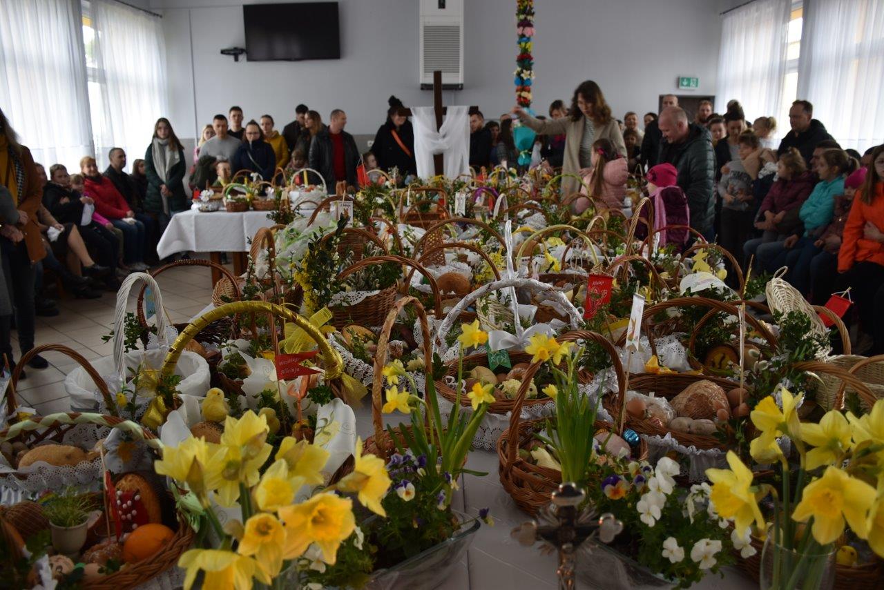 To w już nie tylko Ratajach, ale w gminie wieloletnia tradycja. Dziesiątki, jeśli nie więcej koszyczków - święconek ledwie pomieściły się na wielkim stole, który w tym celu ustawiony został na środku sali. Całość wieńczył krzyż opleciony woalem oraz wysoka na 2 metry palma. Coraz liczniejszy tłum oczekiwał na przybycie ks. Jana Korygacza proboszcza parafii Nawiedzenia NMP w Chodzieży. Wśród mieszkańców nie mogło zabraknąć wójta gminy (mieszkanki Rataj) Kamili Szejner, radnych rady gminy i sołtysa wsi Teresy Soch.