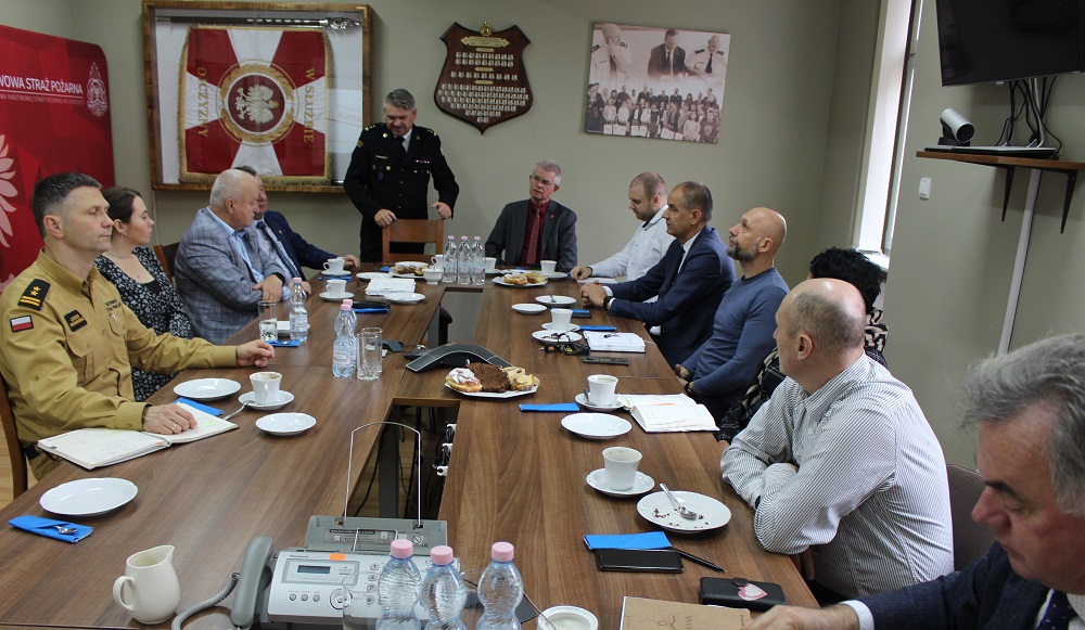 3 listopada 2023 r. o godz. 9:00 odbyło się spotkanie dotyczące zarządzania kryzysowego oraz Systemu ostrzegania i alarmowania (SOiA) na terenie powiatu chodzieskiego. Spotkanie, na którym omówiono sprawy związane z zarządzaniem kryzysowym, odbyło się w siedzibie Komendy Powiatowej Państwowej Straży Pożarnej w Chodzieży w pomieszczeniu, które w razie potrzeby wyznaczone jest jako punkt koordynacyjny służby ratownicze i komunalne, czyli jako Centrum Zarządzania Kryzysowego. Celem głównym spotkania było m.in. omówienie jednolitego organizacyjnie – systemu ostrzegania i alarmowania, zwiększającego skuteczność reakcji podmiotów systemu ochrony ludności, a co za tym idzie zwiększenie poziomu bezpieczeństwa obywateli. W spotkaniu uczestniczyli: - Starosta Chodzieski Pan Mirosław Juraszek, - Zastępca Wójta Gminy Chodzież Pani Ewa Kubiś, - Burmistrz Miasta i Gminy Szamocin Pan Eugeniusz Kucner, - Burmistrz Miasta i Gminy Budzyń Pan Marcin Sokołowski, - Burmistrz Miasta i Gminy Margonin Pan Janusz Piechocki, - Zastępca Burmistrza Miasta Chodzieży Pan Piotr Witkowski, - pracownicy Starostwa oraz Urzędów Miast i Gmin odpowiedzialni za sprawy związane z zarządzaniem kryzysowym, - Komendant Powiatowy Państwowej Straży Pożarnej w Chodzieży bryg. Adam Grunwald, - Zastępca Komendanta Powiatowego Państwowej Straży Pożarnej w Chodzieży bryg. Leszek Naranowicz, - Naczelnik Wydziału Operacyjno – Szkoleniowego KP PSP w Chodzieży kpt. Artur Binkowski.