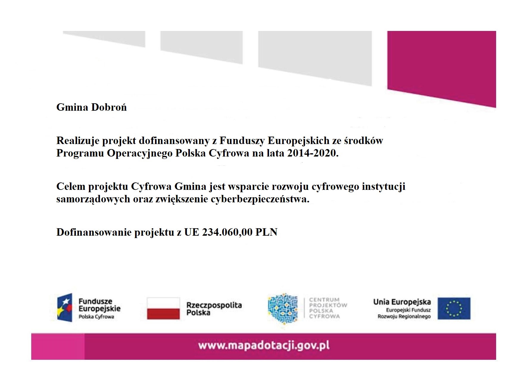 Gmina Dobroń w ramach projektu „Cyfrowa Gmina” pozyskała grant w wysokości 234.060,00 zł.