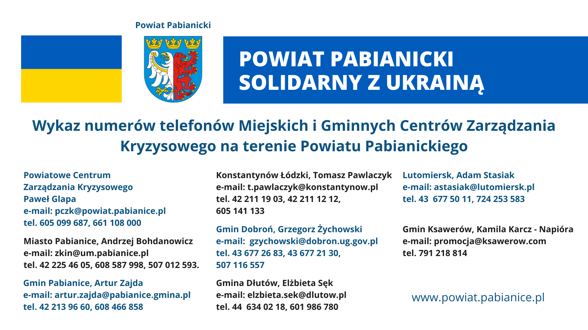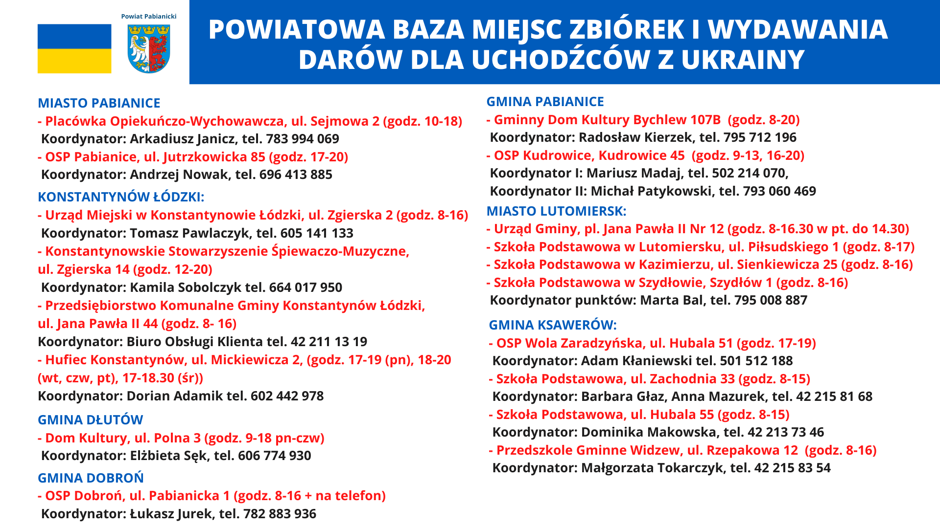 Osoby prywatne oraz przedsiębiorcy chcący udzielić pomocy materialnej lub finansowej prosimy o wcześniejszy kontakt w celu koordynacji działań.