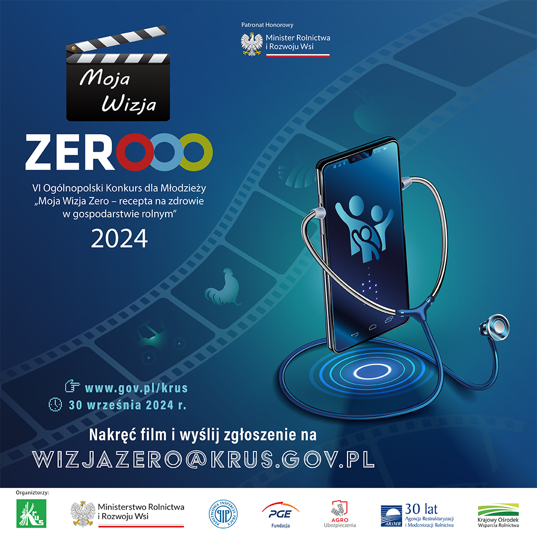 VI edycja Ogólnopolskiego Konkursu dla Młodzieży „Moja Wizja Zero – recepta na zdrowie w gospodarstwie rolnym” odbywa się pod Patronatem Honorowym Ministra Rolnictwa i Rozwoju Wsi. Współorganizatorami konkursu są: Ministerstwo Rolnictwa i Rozwoju Wsi, Agencja Restrukturyzacji i Modernizacji Rolnictwa, Krajowy Ośrodek Wsparcia Rolnictwa, Państwowa Inspekcja Pracy Główny Inspektorat Pracy, AGRO Ubezpieczenia - Towarzystwo Ubezpieczeń Wzajemnych, Fundacja PGE.
