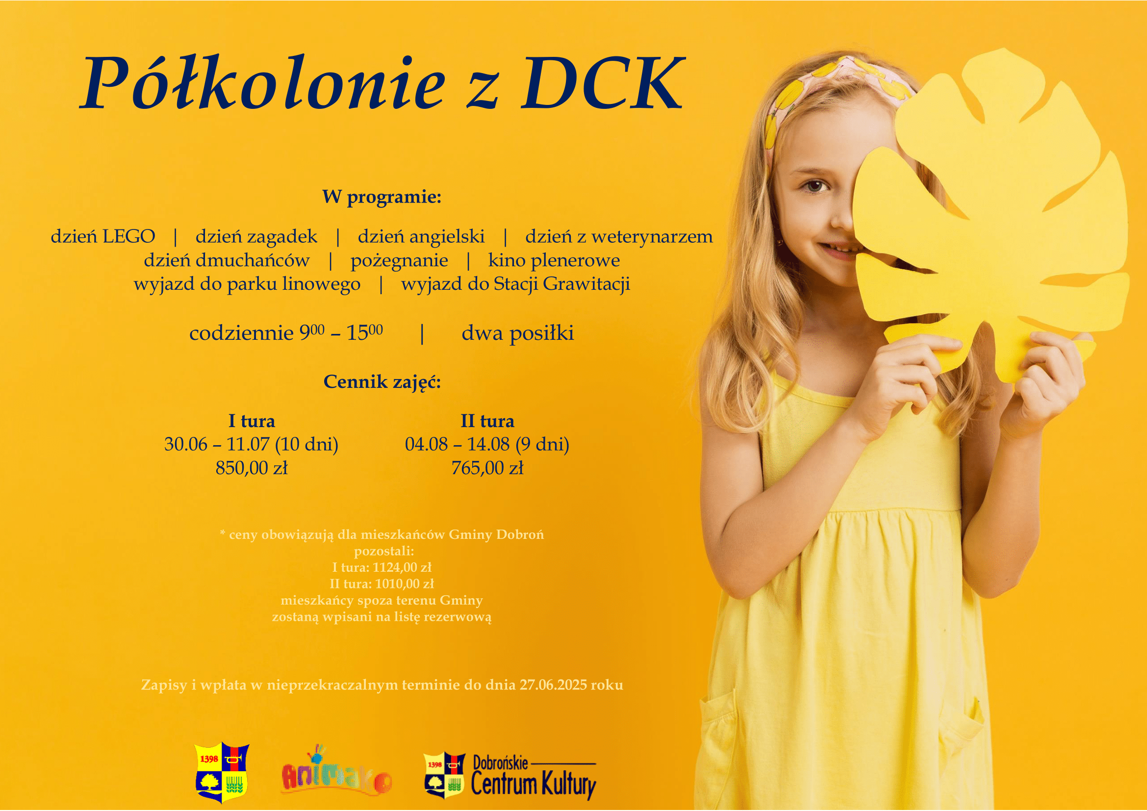 Rekrutacja odbywa się w siedzibie Dobrońskiego Centrum Kultury do dnia 27.06.2025 roku.