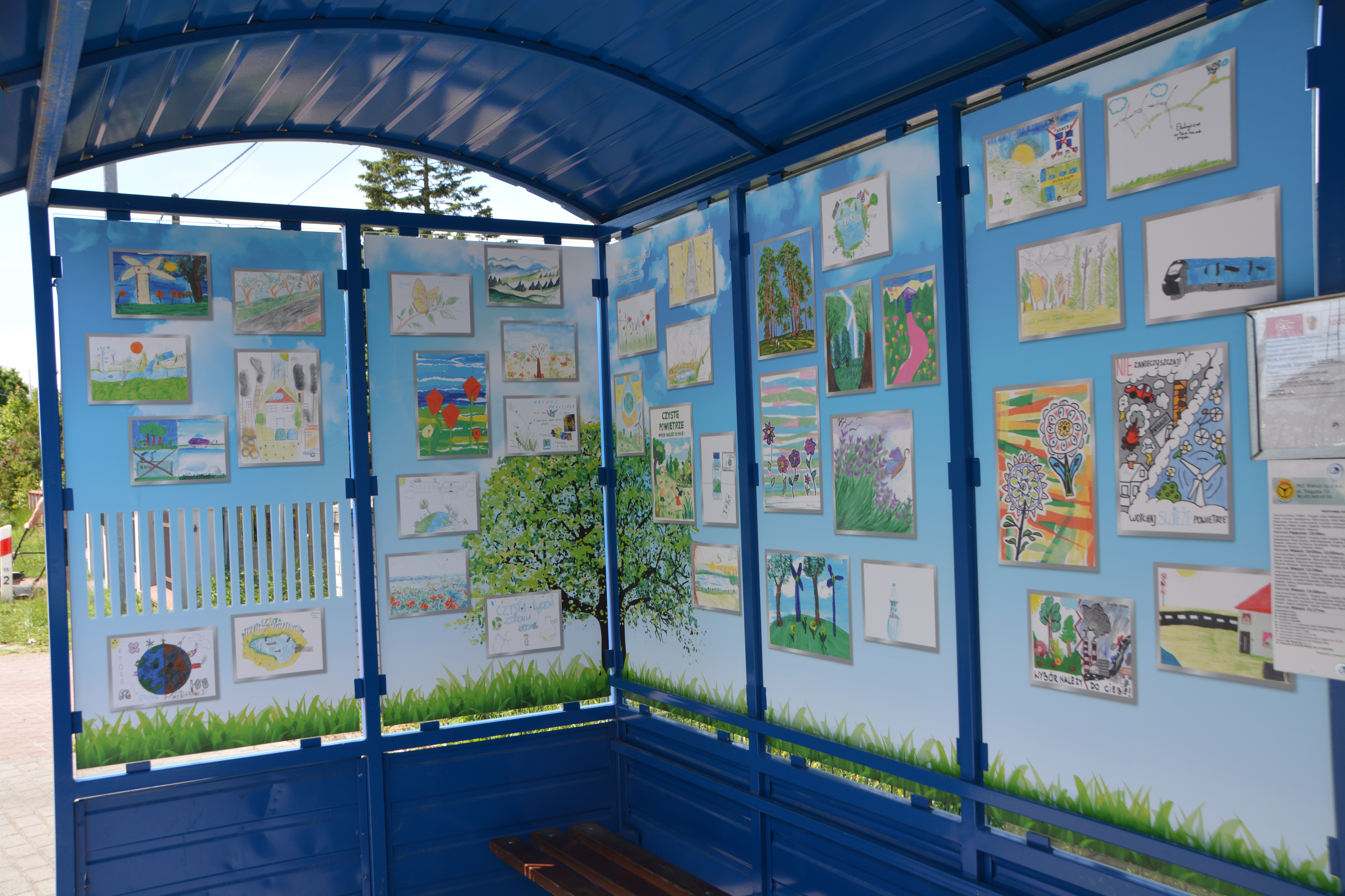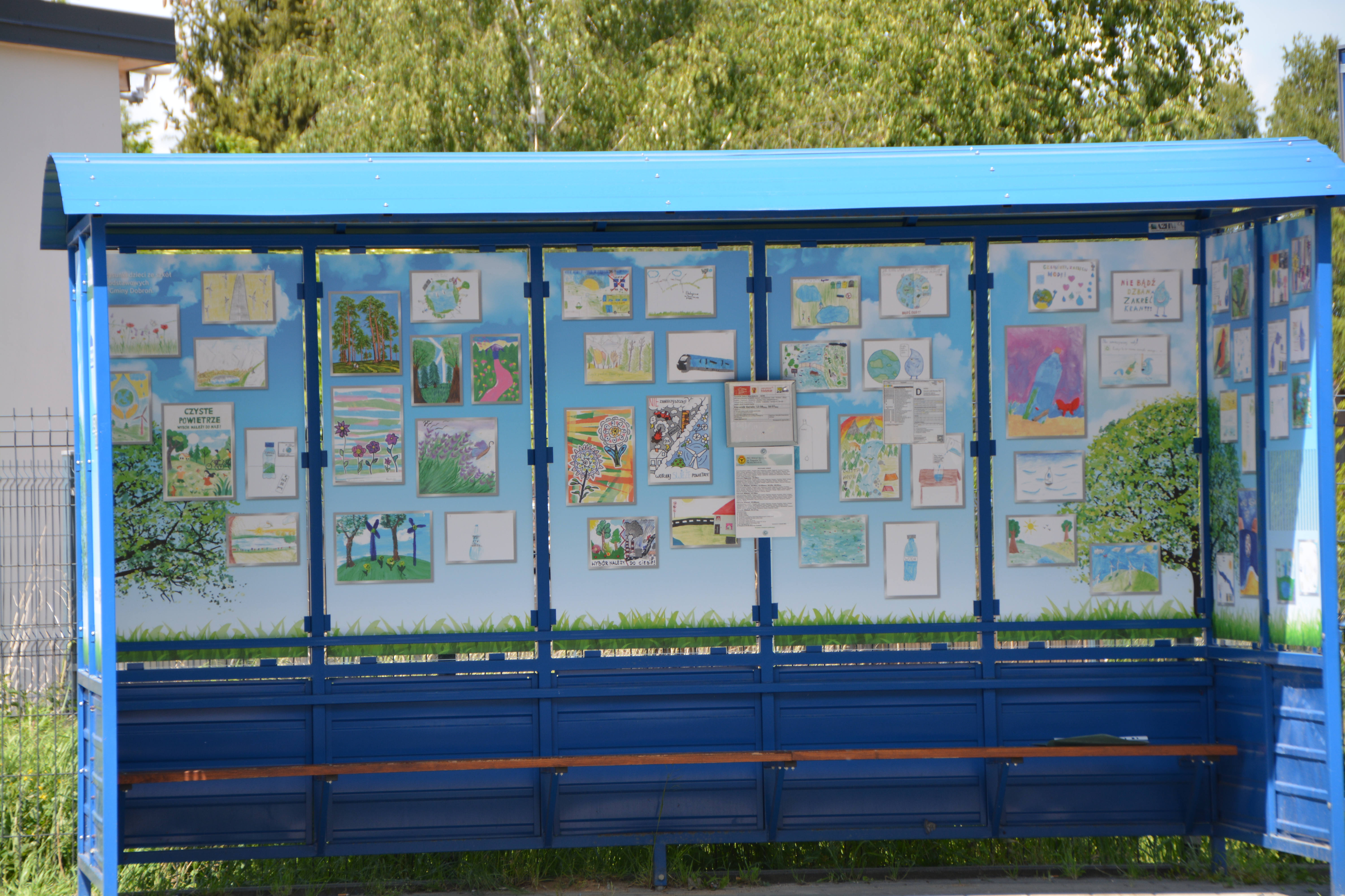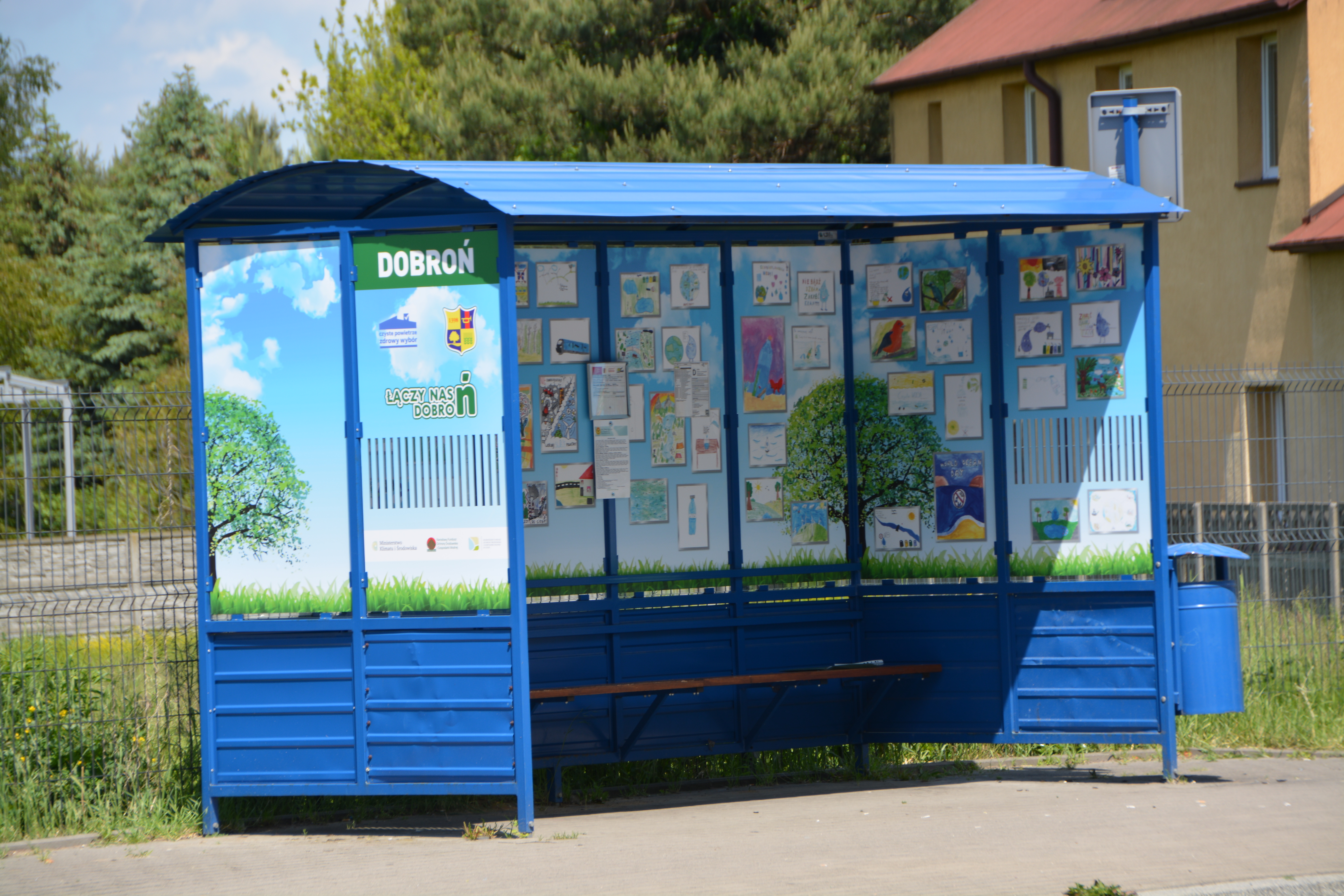 W maju br. na terenie Gminy Dobroń zakończono realizację wyjątkowej inicjatywy edukacyjno-ekologicznej, polegającej na obklejeniu 8 przystanków autobusowych grafikami stworzonymi przez dzieci ze Szkół Podstawowych w Gminie Dobroń.