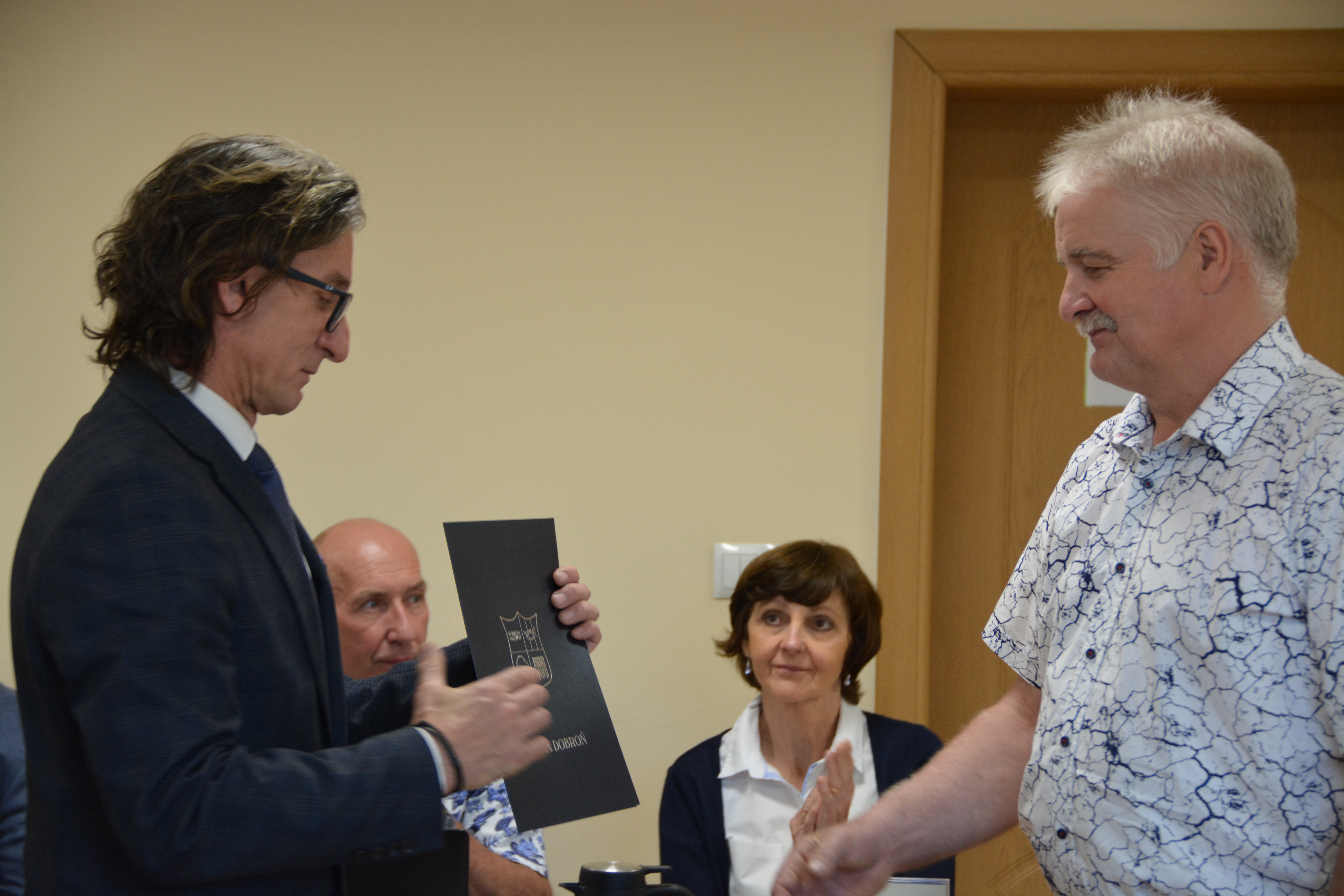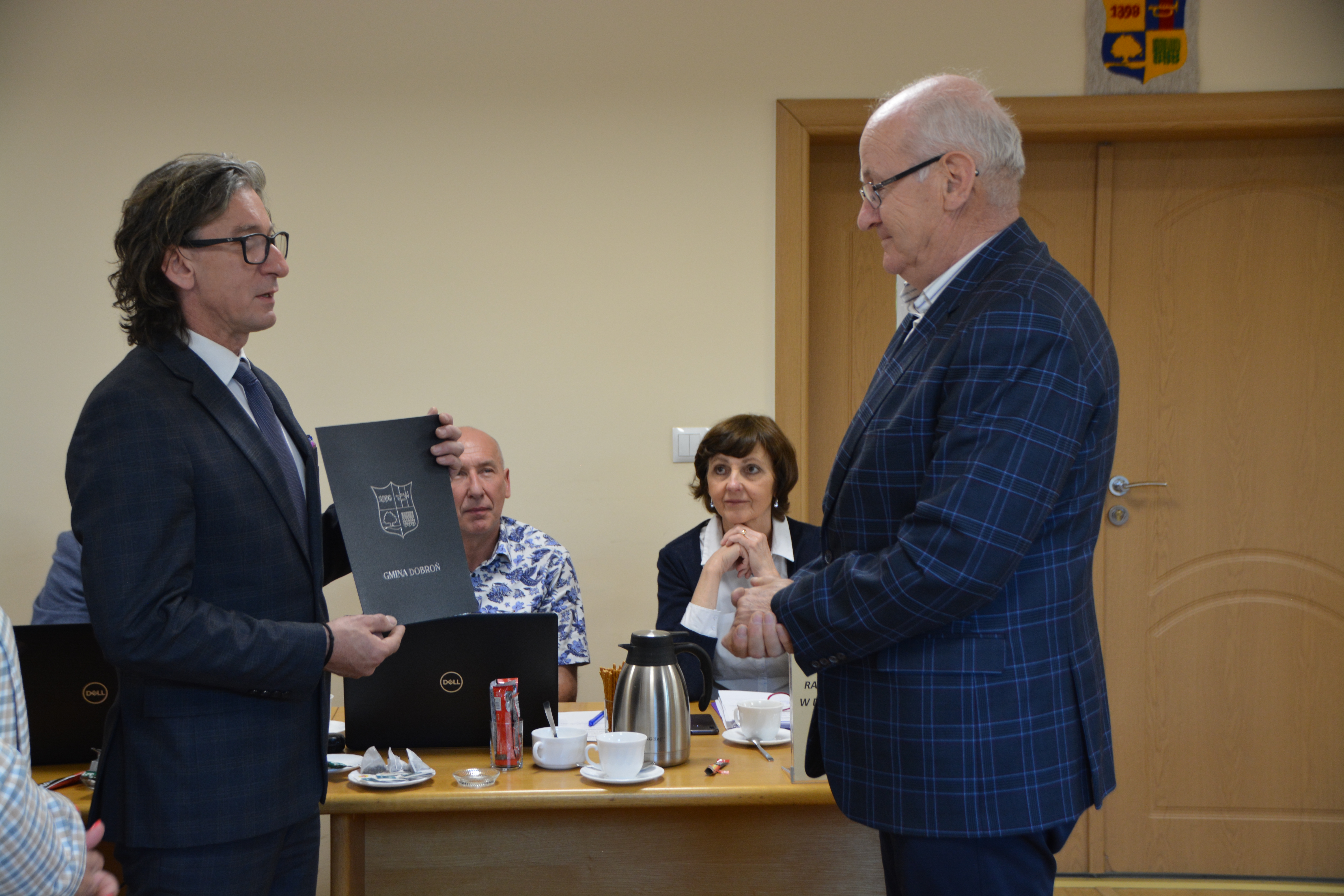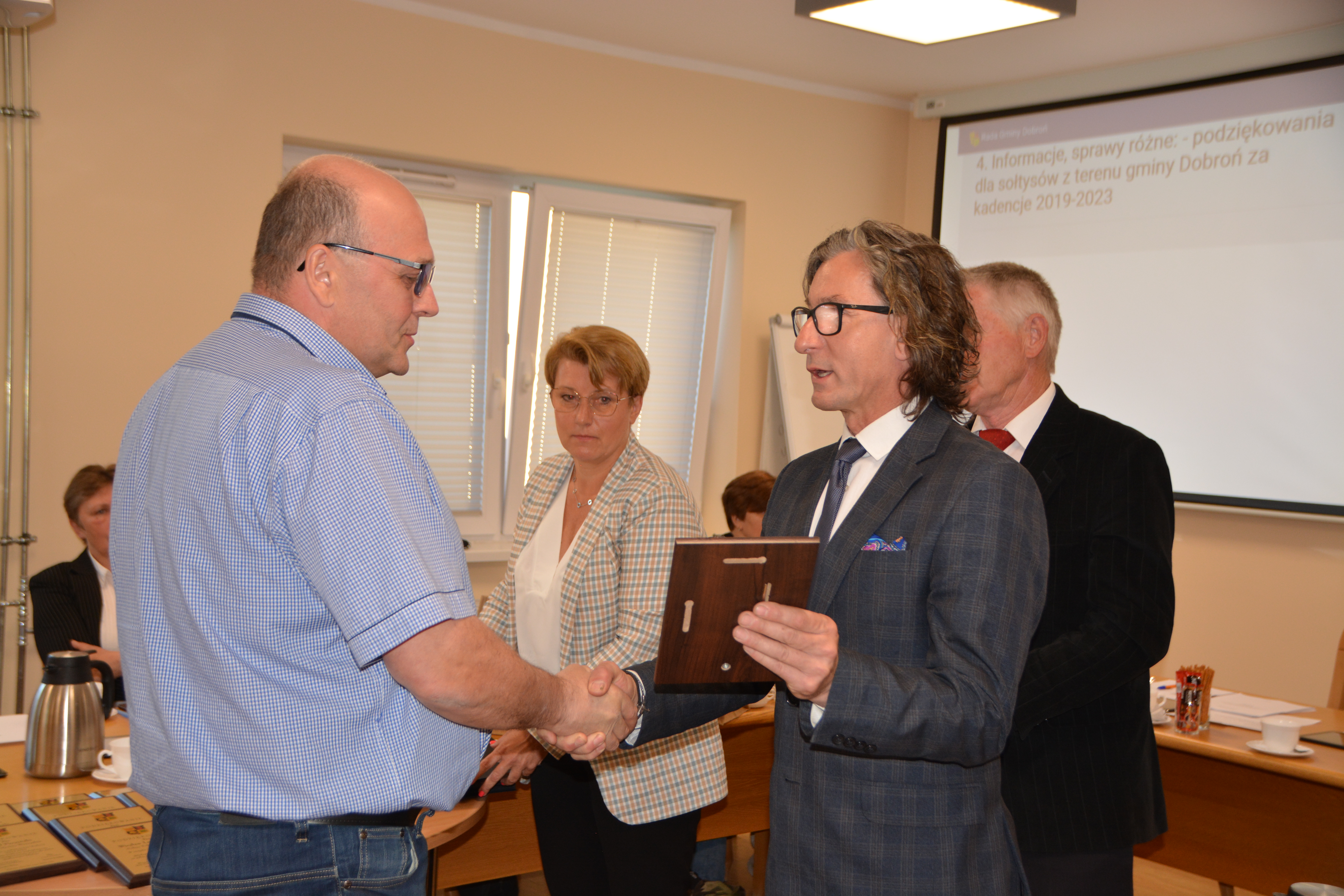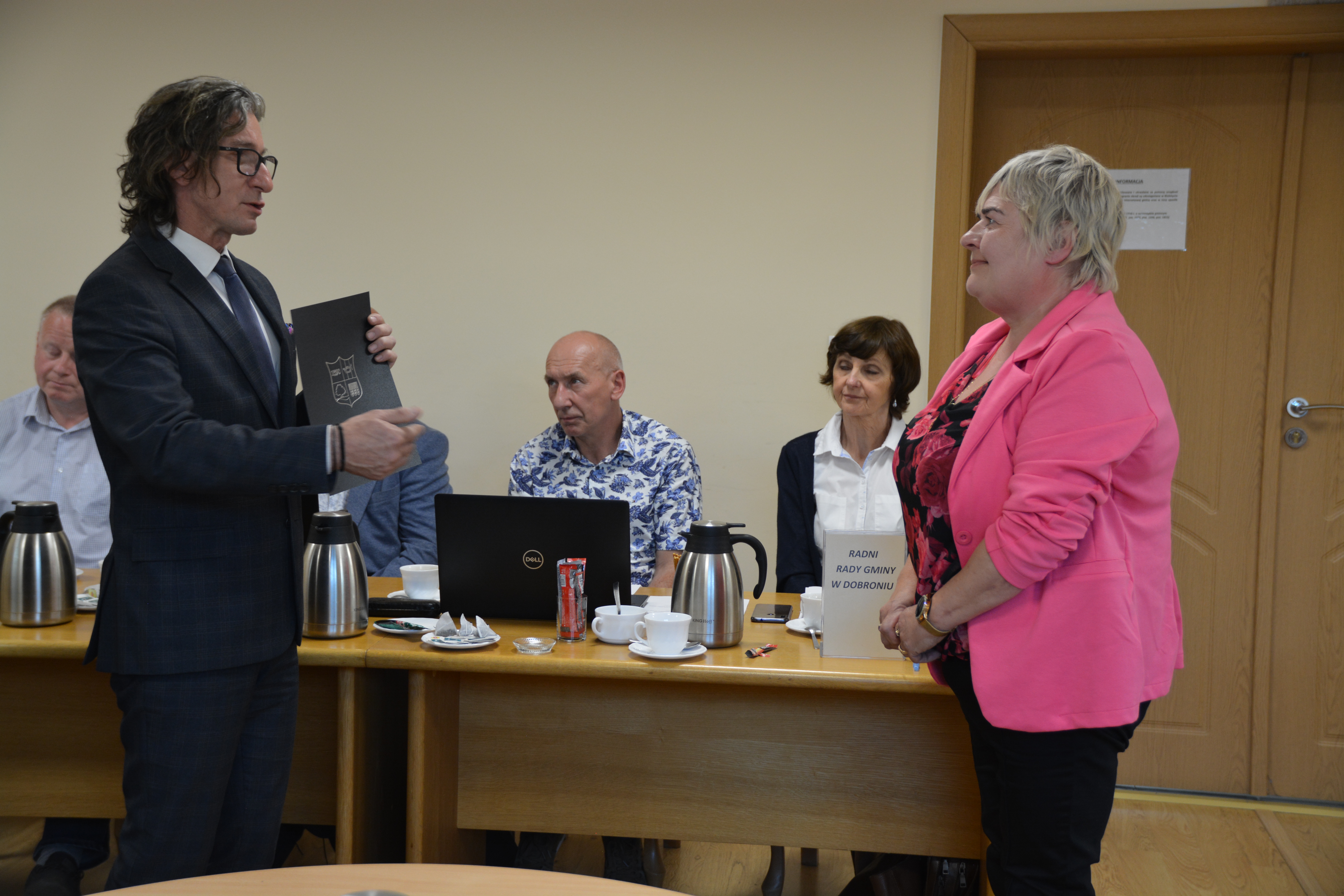 30 maja 2023 r. podczas LI Sesji Rady Gminy w Dobroniu Wójt Gminy Dobroń Robert Jarzębak wspólnie z Wiceprzewodniczącymi Rady Gminy w Dobroniu Moniką Wolna oraz Tadeuszem Różańskim, złożyli serdeczne gratulacje wszystkim nowo wybranym Sołtysom oraz wręczyli podziękowania dla sołtysów, którzy zakończyli kadencje 2019-2023.