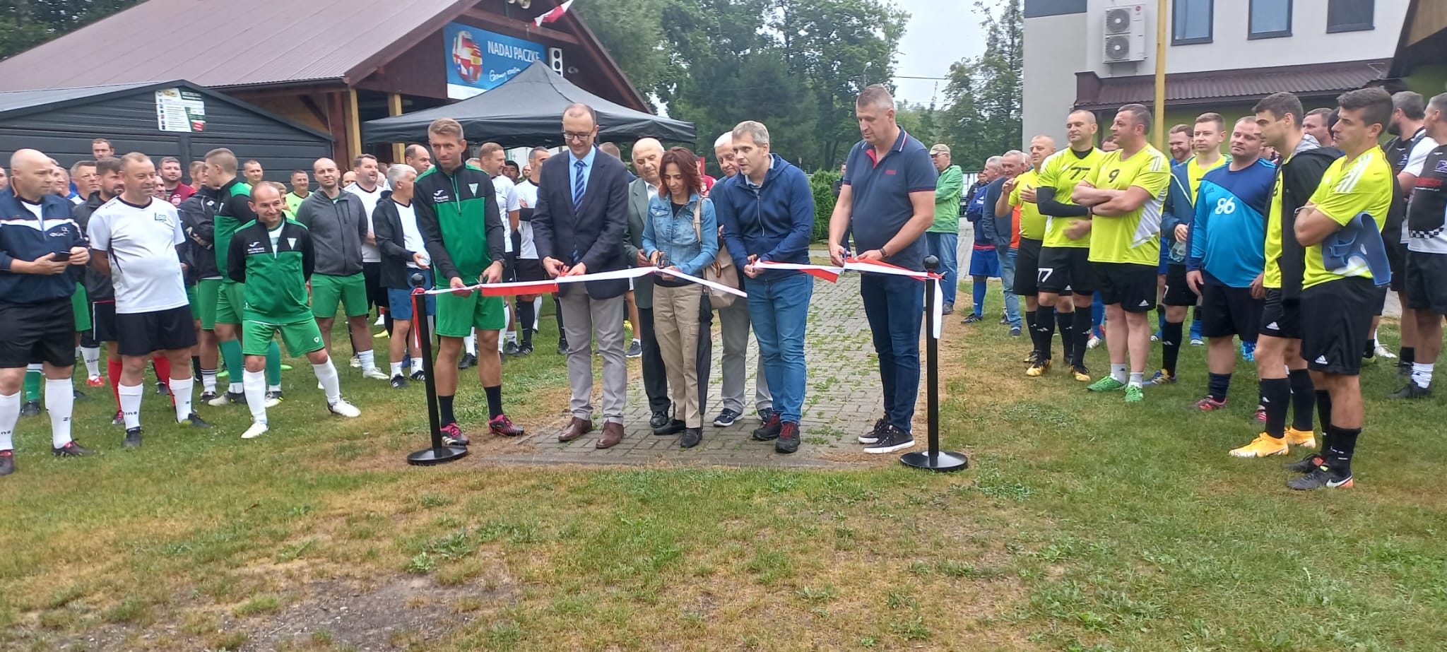Następnie nastąpiło uroczyste oddanie do użytku zmodernizowanego boiska. Biało-czerwoną wstęgę przecięli wspólnie: wójt Grzegorz Sikorski, sołtys Mariusz Króliczek, wiceprezes Victorii Hażlach Szymon Zrąbkowski oraz Magdalena i Grzegorz Kasztura. Modernizacja obiektu została rozpoczęta nakładem własnym klubu, dzięki środkom otrzymanym od prywatnych sponsorów, a następnie pozyskanym przez Gminę Hażlach z Unii Europejskiej w ramach Programu Rozwoju Obszarów Wiejskich na lata 2014-2020, a także z Funduszu Sołeckiego i nagrody otrzymanej przez Sołectwo Hażlach w roku 2023 za udział w konkursie „Piękna wieś województwa śląskiego”. Przebudowa objęła poszerzenie i wydłużenie płyty boiska celem doprowadzenia do zgodności z aktualnie obowiązującymi przepisami, następnie budowę piłkochwytów, nowych trybun, płotu oddzielającego plac gry od kibiców oraz nowych wiat dla drużyn gospodarzy i gości.