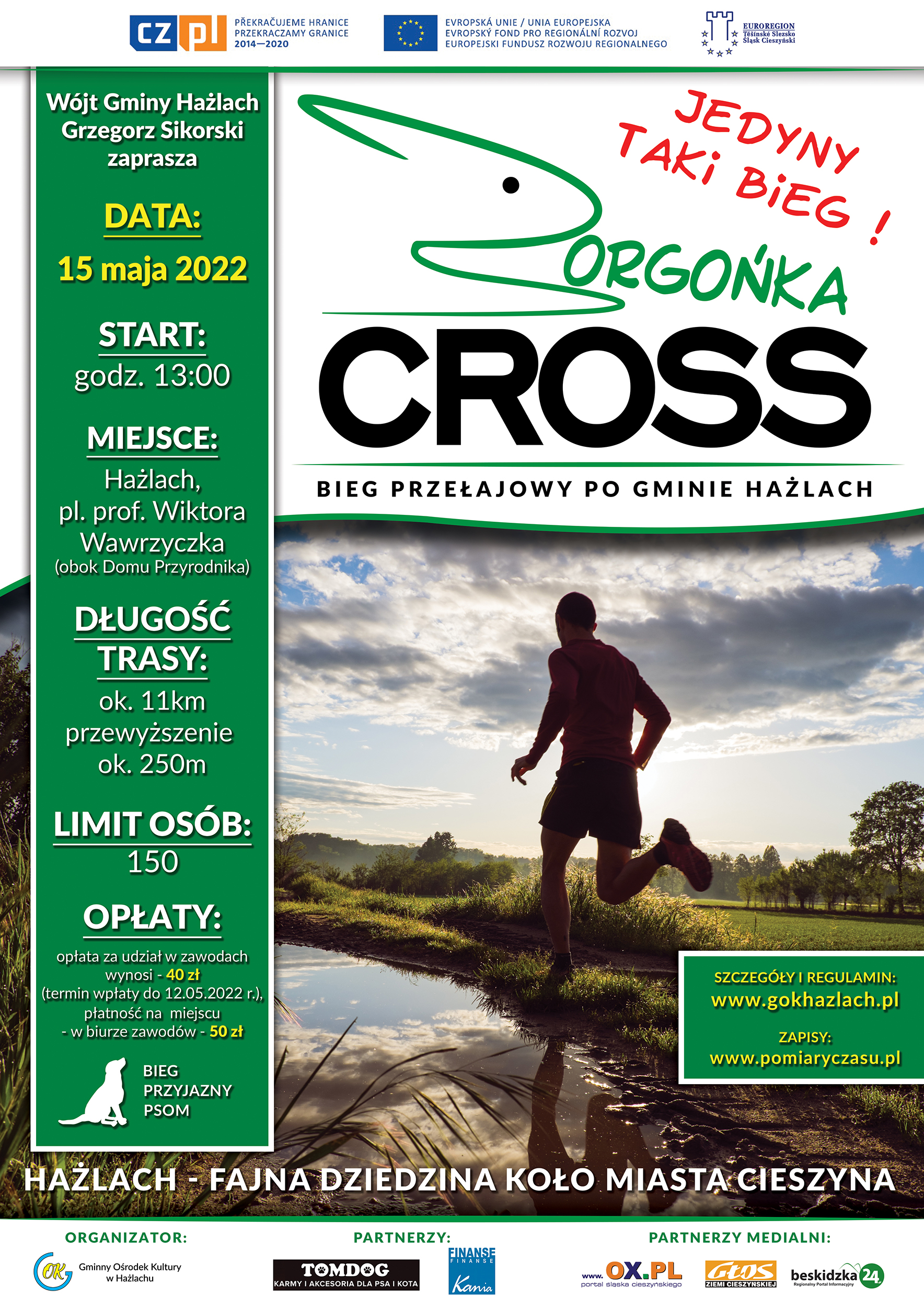 Wójt Gminy Hażlach i Gminny Ośrodek Kultury w Hażlachu zapraszają na III edycję biegu przełajowego, który odbędzie się w niedzielę 15 maja. Tym razem start i meta obok Domu Przyrodnika w Hażlachu. Zachęcamy do zapisów i do zapoznania się z Regulaminem.