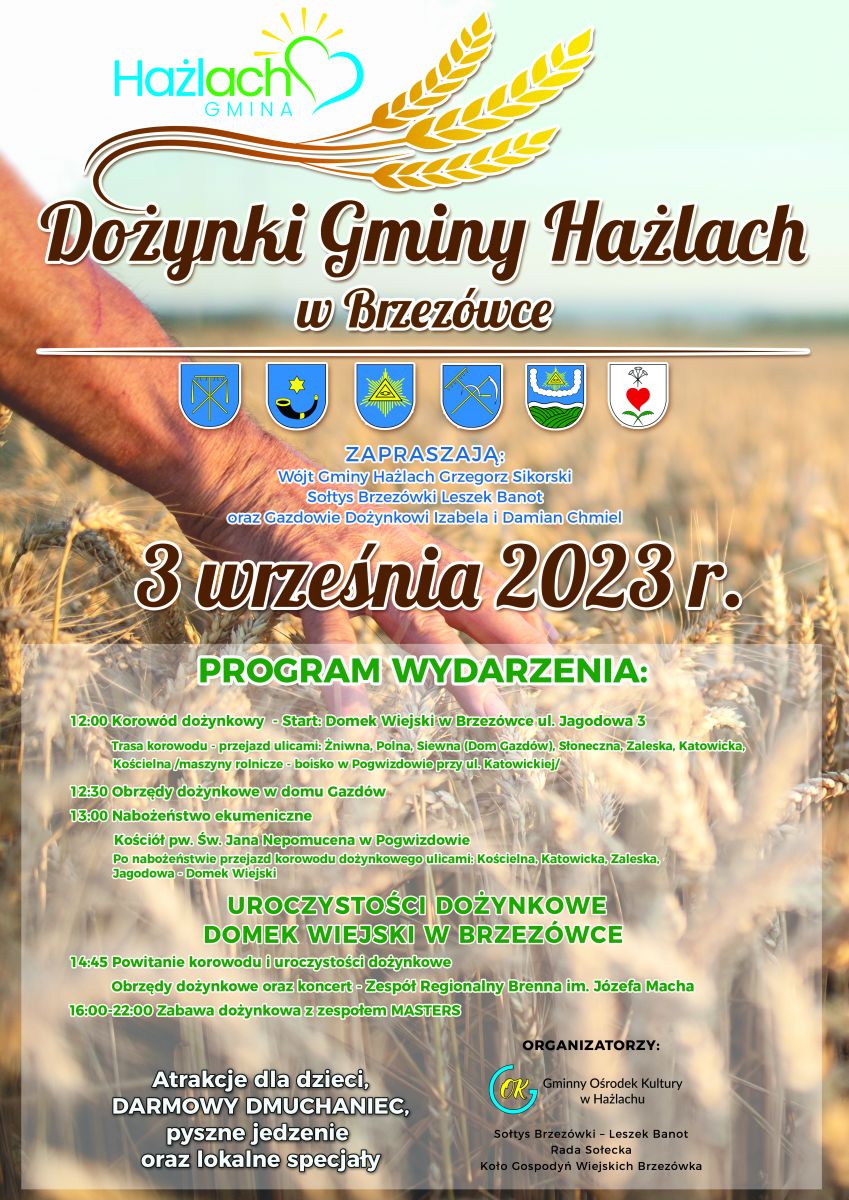 W niedzielę 3 września w Brzezówce odbędą się Dożynki Gminy Hażlach. Szczegóły na poniższym plakacie.