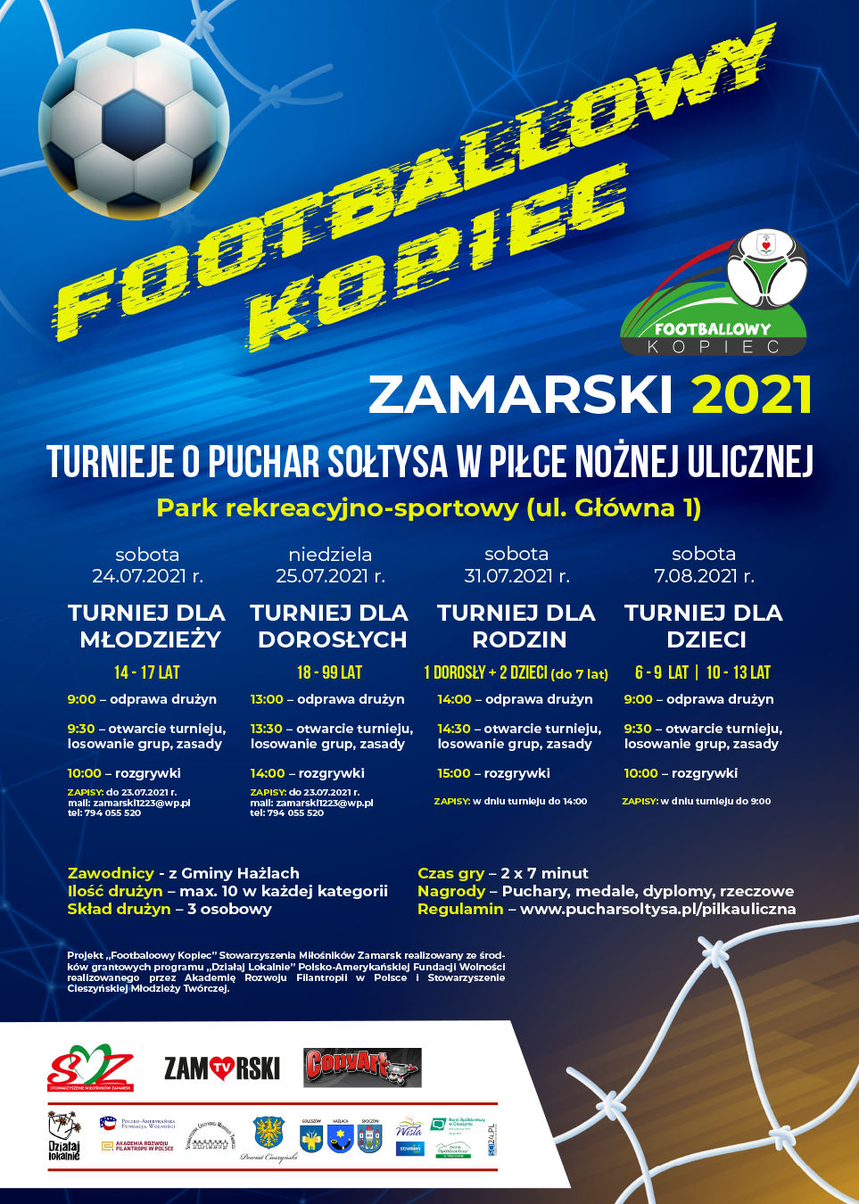 Stowarzyszenie Miłośników Zamarsk postawiło na piłkę. „Footballowy Kopiec” to nic innego jak organizacja turniejów w piłce nożnej ulicznej oraz w piłkarzyki o Puchar Sołtysa. Swoich sił mogą spróbować zarówno dzieciaki, młodzież, jak i dorośli.