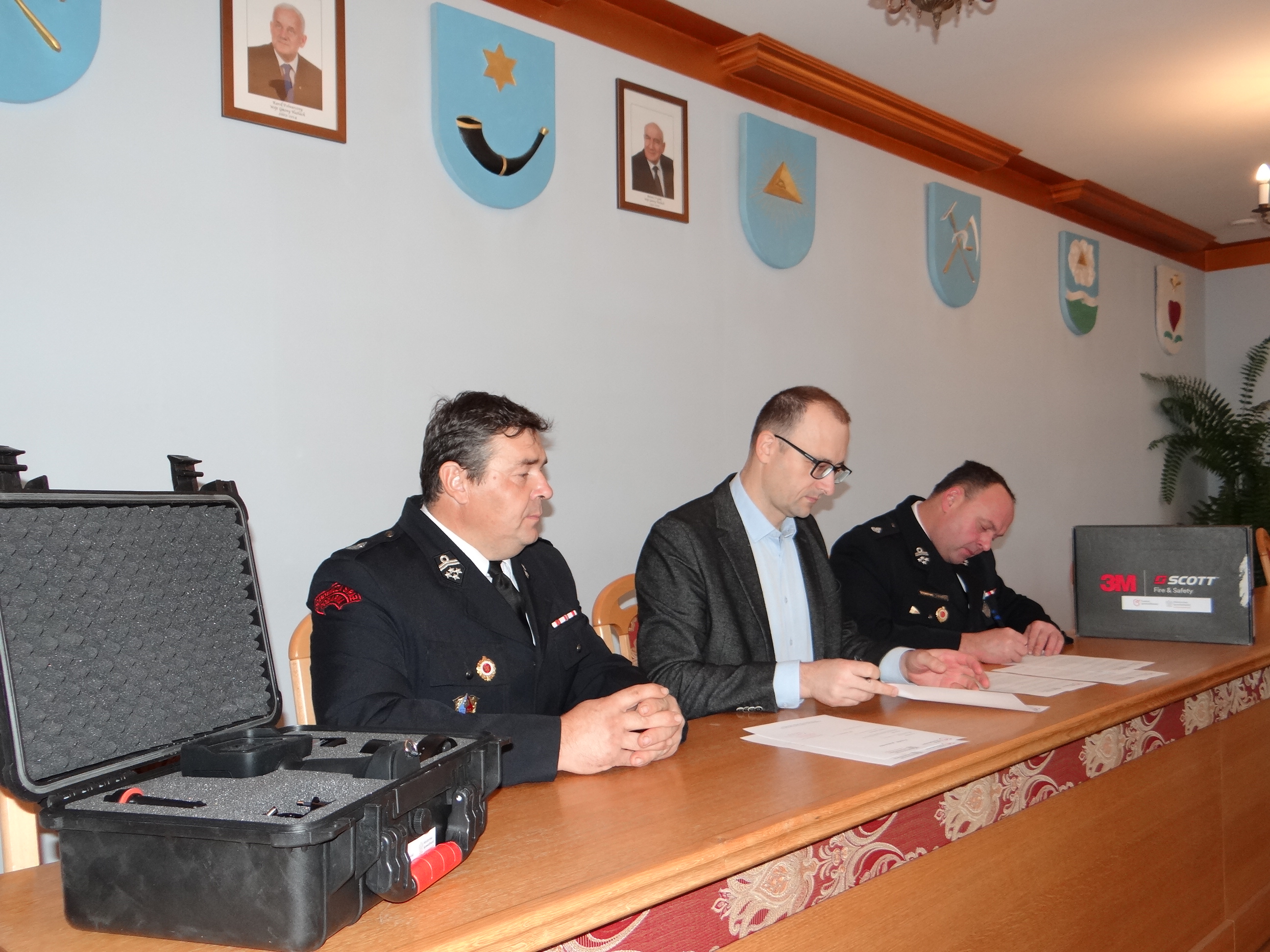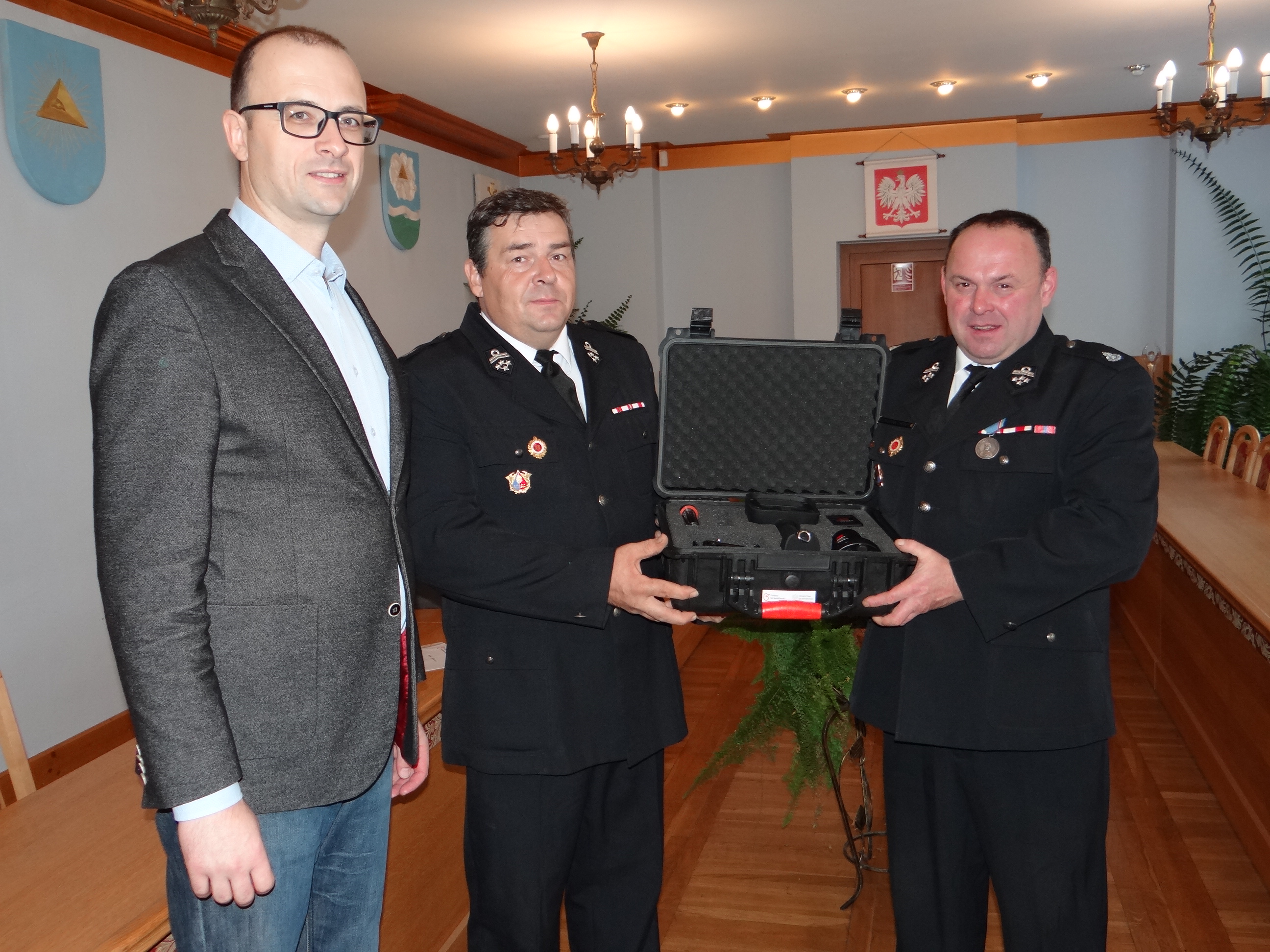 Przekazanie urządzenia na podstawie umowy darowizny nastąpiło 16 listopada bieżącego roku w sali sesyjnej Urzędu Gminy Hażlach w obecności Wójta Gminy Grzegorza Sikorskiego. Strażaków reprezentował Prezes OSP Hażlach Sebastian Chrapek oraz Naczelnik tej jednostki, zarazem Komendant Gminny OSP, Kazimierz Orszulik. – Składamy podziękowania Ministerstwu Sprawiedliwości i Ministrowi-Członkowi Rady Ministrów Michałowi Wójcikowi, a także Gminie Hażlach za jej cegiełkę dołożoną do tego zakupu. Kamera bardzo nam pomoże przy lokalizacji zarzewia ognia oraz źródeł ciepła będących efektem pożaru. Przyda się także podczas ewentualnych poszukiwań osób zaginionych w terenach leśnych – powiedział Prezes Sebastian Chrapek.