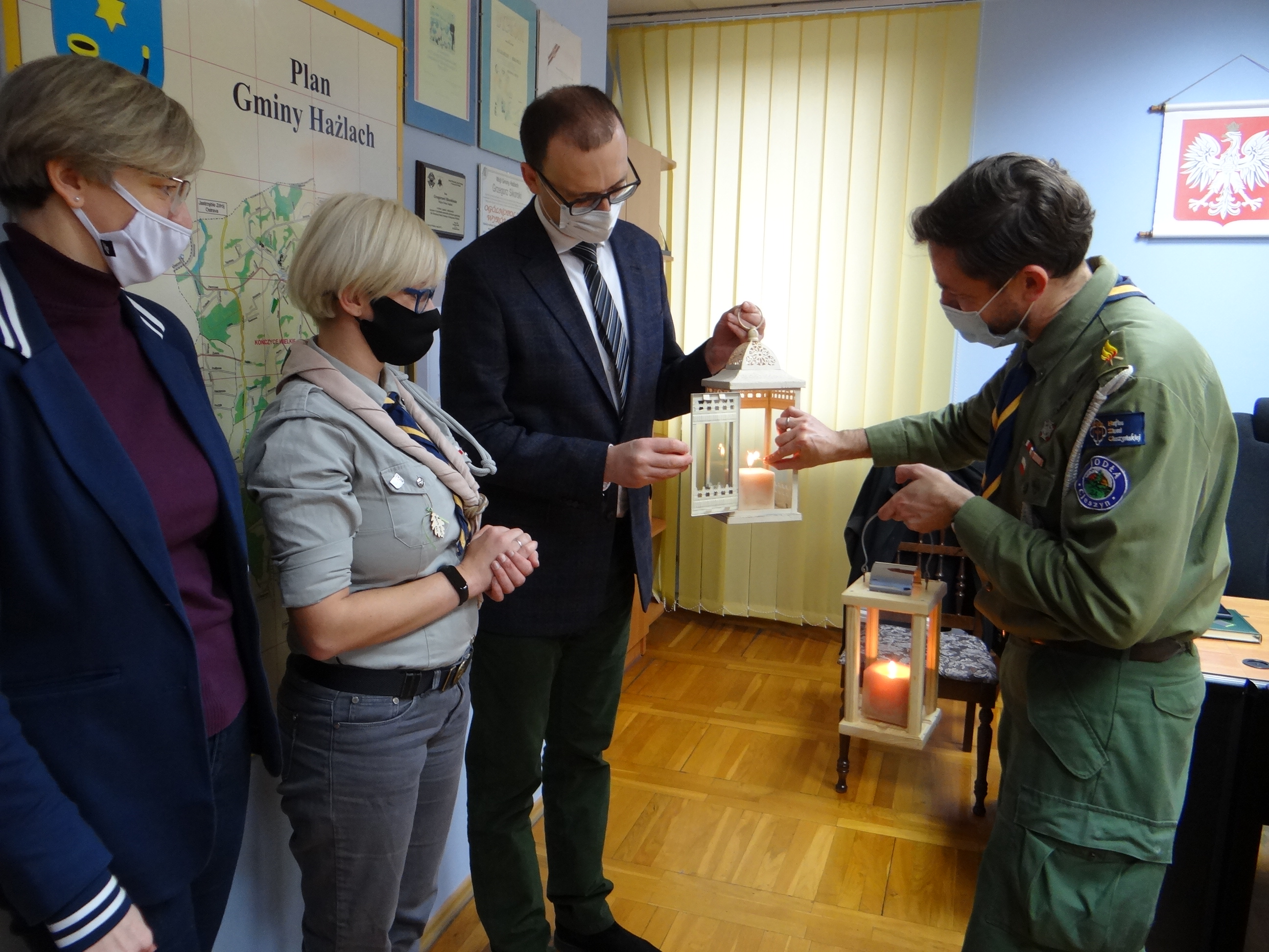 20 grudnia przedstawiciele Hufca Ziemi Cieszyńskiej Związku Harcerstwa Polskiego po raz kolejny odwiedzili Urząd Gminy Hażlach. Światło z Betlejem z rąk Komendanta Hufca hm. Tomasza Głaska i Zastępcy Komendanta ds. programowych pwd. Kingi Karolewskiej-Gembali przyjął Wójt Gminy Grzegorz Sikorski wraz z Zastępcą Wójta Stanisławą Pelczar.