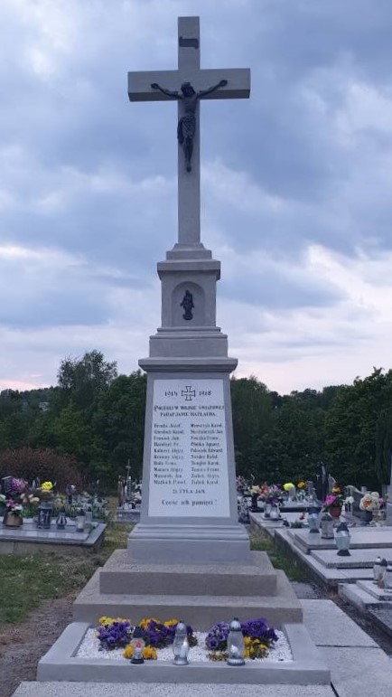 Równolegle udało się zrealizować dwie niezwykle ważne inwestycje na starym cmentarzu katolickim w Hażlachu – renowację krzyża ofiar I Wojny Światowej oraz płyty nagrobnej rodziny Bludowskich. Krzyż upamiętniający 21 mieszkańców gminy, którzy polegli w latach 1914–1918, przez dekady przypominał o ich poświęceniu. Niestety, jego stan techniczny był na tyle zły, że istniało realne ryzyko zawalenia. Dla mnie osobiście była to wewnętrzna potrzeba – aby zachować pamięć o tych, którzy oddali życie za wolną i niepodległą Polskę. Gdybyśmy dziś nie podjęli działań, za kilkanaście lat nikt nie wiedziałby, że taki obiekt istniał – a tym samym, nie pamiętałby o tych ludziach. Drugim zadaniem była renowacja XVII-wiecznej płyty nagrobnej rodziny Bludowskich – dawnych właścicieli Hażlacha, Drogomyśla, Pruchnej i Rychwałdu. Płyta znajdowała się w bardzo złym stanie technicznym – herb był już całkowicie nieczytelny, a dalsza degradacja pozostawała tylko kwestią czasu. Do działania zmotywował mnie pan Józef Stoszek, lokalny pasjonat historii, który nieustannie przypomina, jak ważne są nasze lokalne korzenie. Obie inwestycje zostały zrealizowane dzięki wsparciu z Rządowego Programu Odbudowy Zabytków – „Polski Ład”: krzyż – 139 698 zł (dotacja 137 200 zł), płyta – 79 698 zł (dotacja 78 400 zł). Dziękuję wszystkim, którzy włączyli się w te działania: panom posłom Stanisławowi Szwedowi i Przemysławowi Drabkowi – za wsparcie projektu, ks. proboszczowi Markowi Nieciągowi – za odwagę i zaufanie, panu Józefowi Stoszkowi – za inspirację i zaangażowanie, paniom Sylwii Lebiodzie i Annie Halickiej – za nadzór nad rozliczeniami, panom Czesławowi i Grzegorzowi Koniecznym – za zaangażowanie przy realizacji prac konserwatorskich.