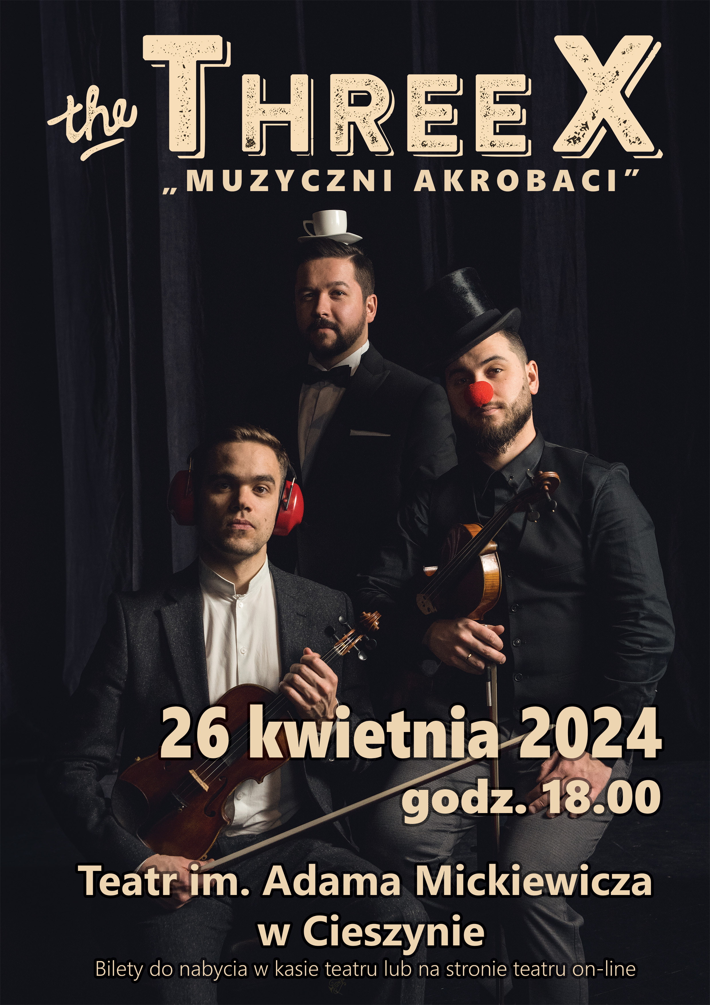 Cieszyńskie Stowarzyszenie „Pomocna Dłoń Blisko Ciebie”, które m.in. zajmuje się działalnością kulturalno-oświatową oraz ochroną zdrowia, zaprasza 26 kwietnia br. o godz. 18.00 do Teatru im. A. Mickiewicza w Cieszynie na koncert zespołu The ThreeX. Artyści gwarantują kulturę na wysokim poziomie oraz wprowadzenie słuchaczy w wyśmienity nastrój, co ma niebagatelny wpływ na nasze zdrowie. Zespół tworzą wirtuozi skrzypiec i fortepianu, laureaci międzynarodowych konkursów, absolwenci renomowanego Uniwersytetu Muzycznego w Wiedniu, którzy współpracują z największymi nazwiskami w branży muzycznej.