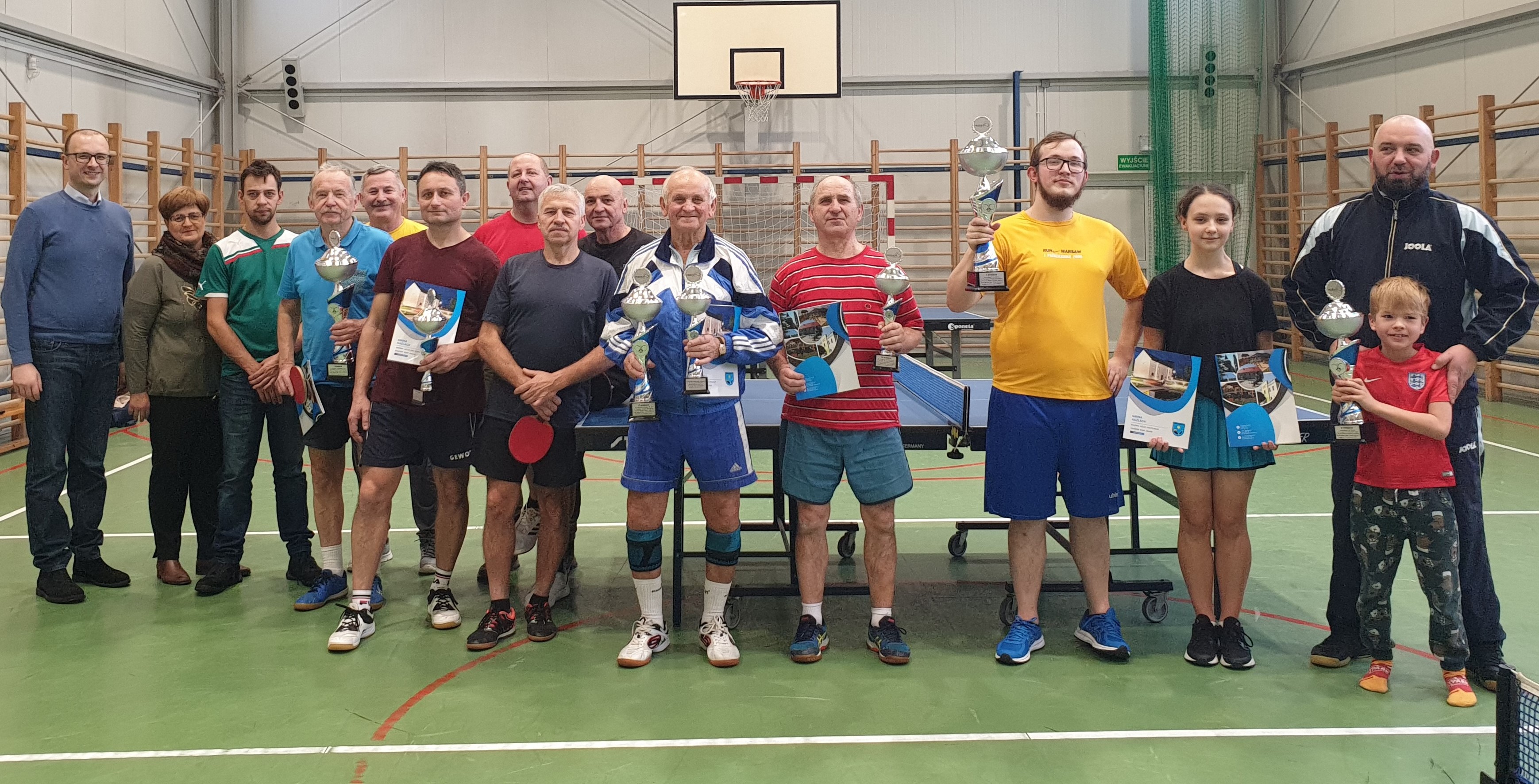 Finaliści zawodów, w tym najstarszy ich uczestnik i zarazem współorganizator Józef Michalik, z rąk Wójta Gminy Grzegorza Sikorskiego oraz Przewodniczącej Komisji Oświaty, Sportu i Spraw Socjalnych Rady Gminy Hażlach Anny Chwolek odebrali puchary i dyplomy ufundowane ze środków promocji Gminy Hażlach.