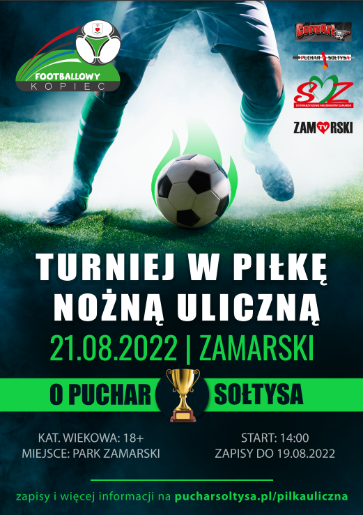 W niedzielę 21 sierpnia w Zamarskach odbędzie się Turniej Piłki Nożnej Ulicznej o Puchar Sołtysa. Początek o godzinie 14.00. Zapisy (do 19 sierpnia) i regulamin pod adresem: www.pucharsoltysa.pl.