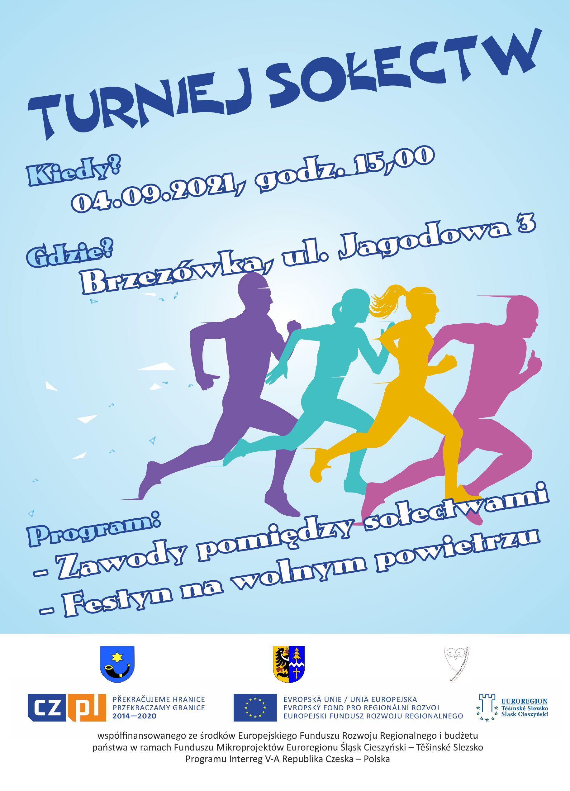 4 września bieżącego roku w ramach projektu „Współpraca w dziedzinie kultury i sportu łączy nas ponad granicami”, współfinansowanego ze środków Europejskiego Funduszu Rozwoju Regionalnego i budżetu państwa w ramach Funduszu Mikroprojektów Euroregionu Śląsk Cieszyński – Těšínské Slezsko Programu Interreg V-A Republika Czeska – Polska, na terenie wokół Domu Wiejskiego w Brzezówce odbędzie się Turniej Sołectw. W programie zawody pomiędzy sołectwami naszej gminy oraz festyn. Początek imprezy o godzinie 15.00. Partnerami projektu są Gmina Hażlach, Gminna Biblioteka Publiczna w Hażlachu oraz Gmina Łomna Górna z Republiki Czeskiej.