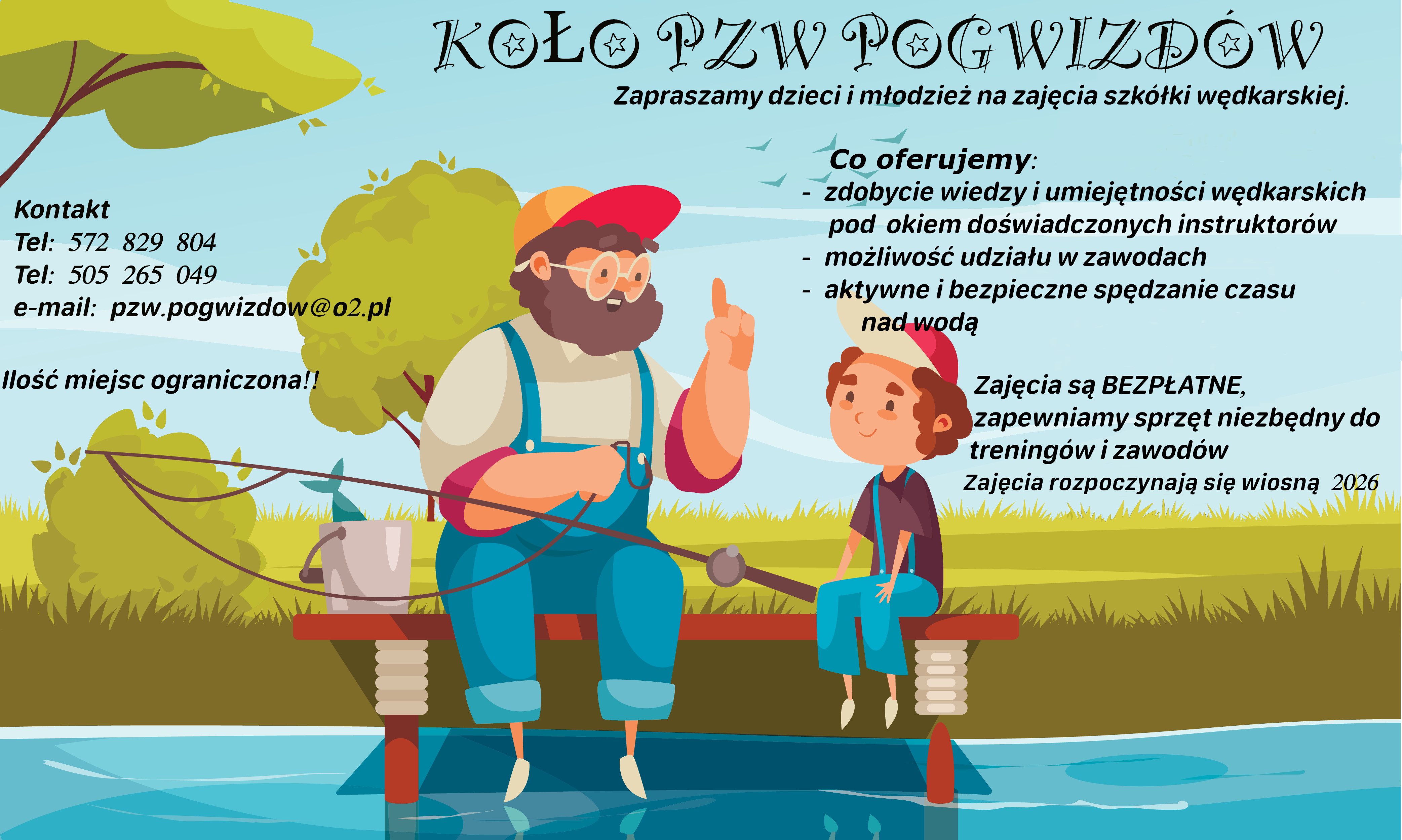 Koło Polskiego Związku Wędkarskiego w Pogwizdowie zaprasza dzieci i młodzież do szkółki wędkarskiej, gdzie pod okiem doświadczonych instruktorów będzie można poznać lub udoskonalić wiedzę wędkarską, oderwać się od codziennych obowiązków i spędzić aktywnie czas w otoczeniu przyrody. Zapewniamy sprzęt wędkarski niezbędny do nauki i dajemy możliwość wzięcia udziału w zawodach. Zainteresowanych prosimy o kontakt bezpośrednio z naszymi instruktorami.