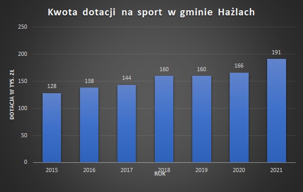 Ponad 15% więcej niż w roku ubiegłym – czyli 191 tys. zł – otrzymają w 2021 roku na swoją działalność kluby sportowe z terenu gminy Hażlach. Jeśli uwzględnimy dotację rzeczową, to mówimy już o kwocie prawie 230 tys. zł. Do tego należałoby dodać jeszcze środki pochodzące z Funduszu Sołeckiego bądź Inicjatywy Sołeckiej – wtedy będziemy mieć pełny obraz wsparcia.
