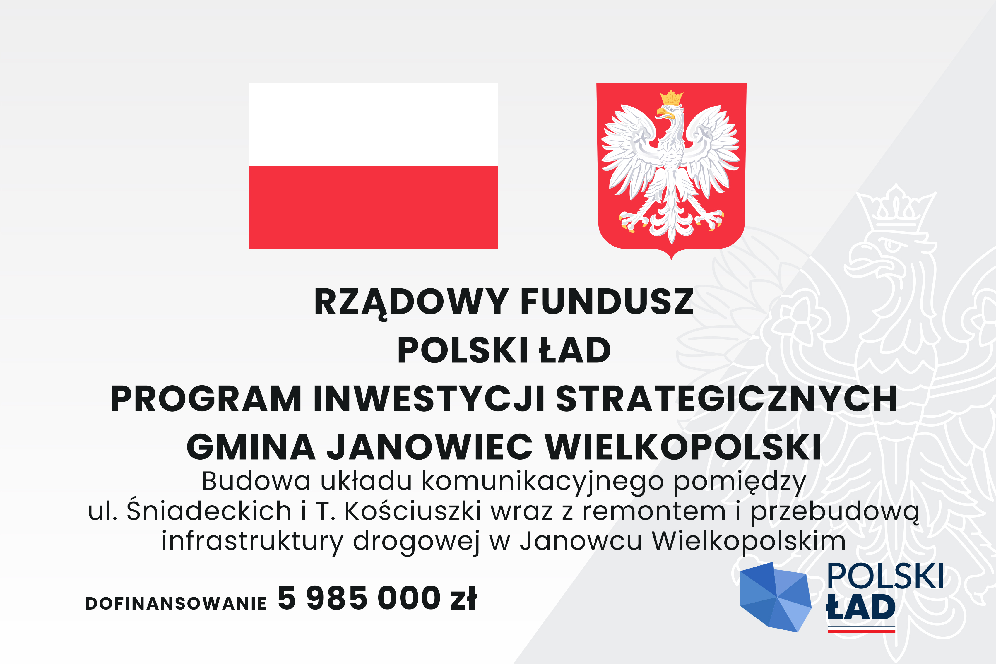 Gmina Janowiec Wielkopolski otrzymała dofinansowanie w ramach Rządowego Funduszu Polski Ład Program Inwestycji Strategicznych na realizację zadań pn.: