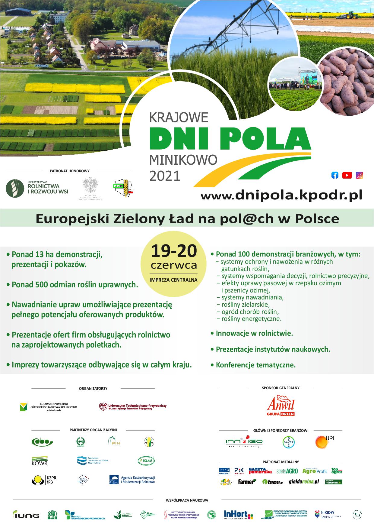 Wszelkie informacje o Krajowych Dniach Pola 2021 znajdują się stronie:https://dnipola.kpodr.plpismo KPODR - Krajowe Dni Pola Minikowo 2021