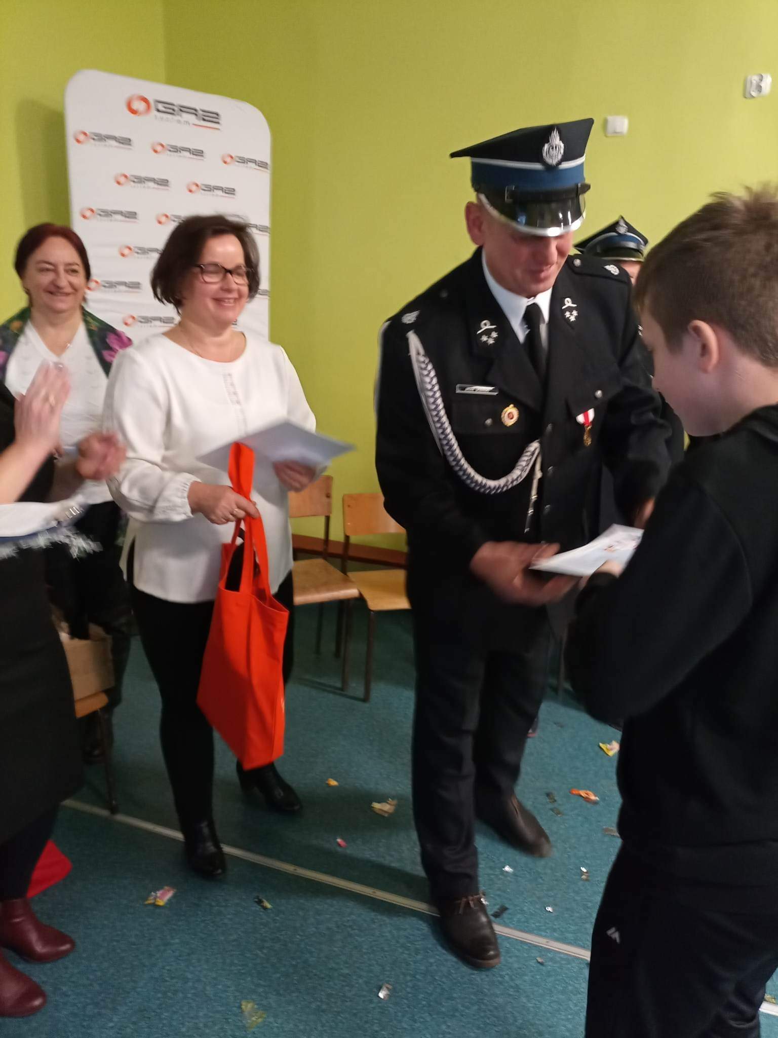 Również goście biorący udział w tej uroczystości: przedstawiciel firmy GAZ-SYSTEM -Pani Renata Gierszewska, władze miasta - Burmistrz Leszek Grzeczka oraz Zastępca Burmistrza Michał Werkowski, sołtys wsi – Pani Teresa Rusiewicz , przedstawiciele Ochotniczej Straży Pożarnej uczestniczyli w zabawie wręczając nagrody i składając życzenia.