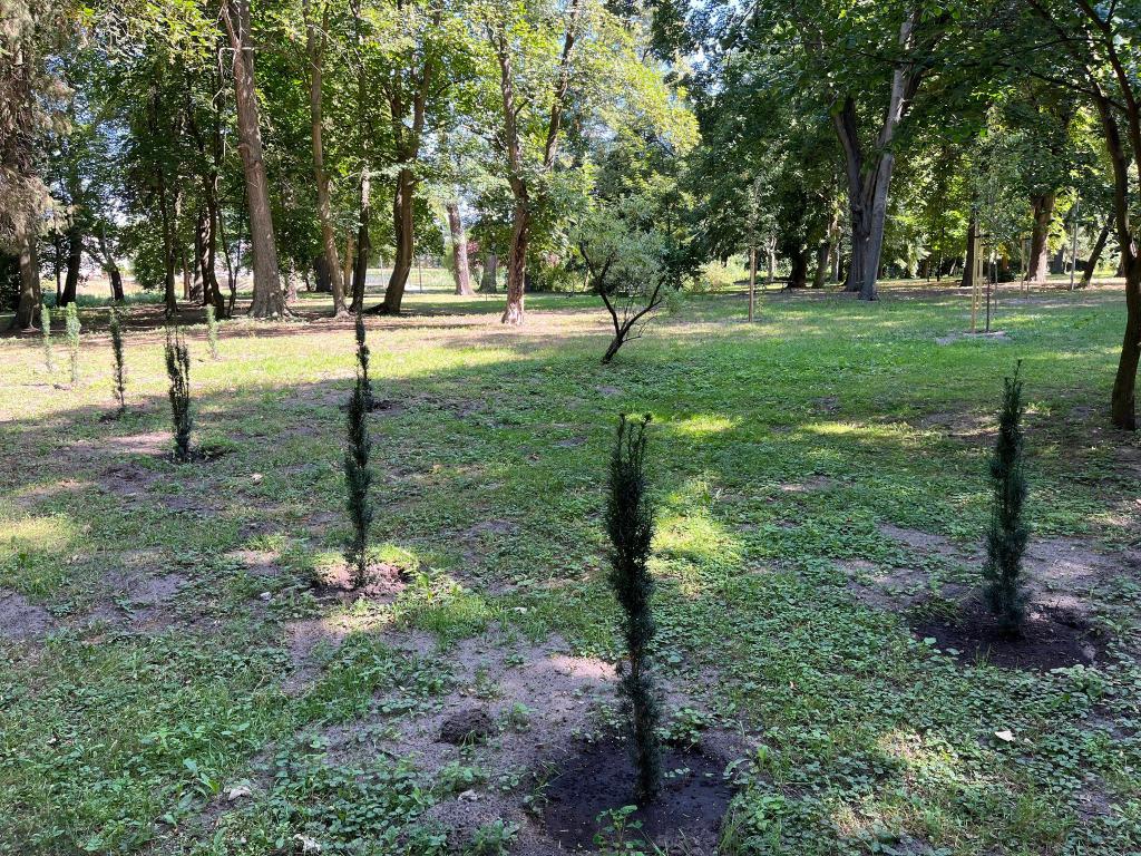 Nasadzenia roślin na terenie parku miejskiego w Janowcu Wielkopolskim