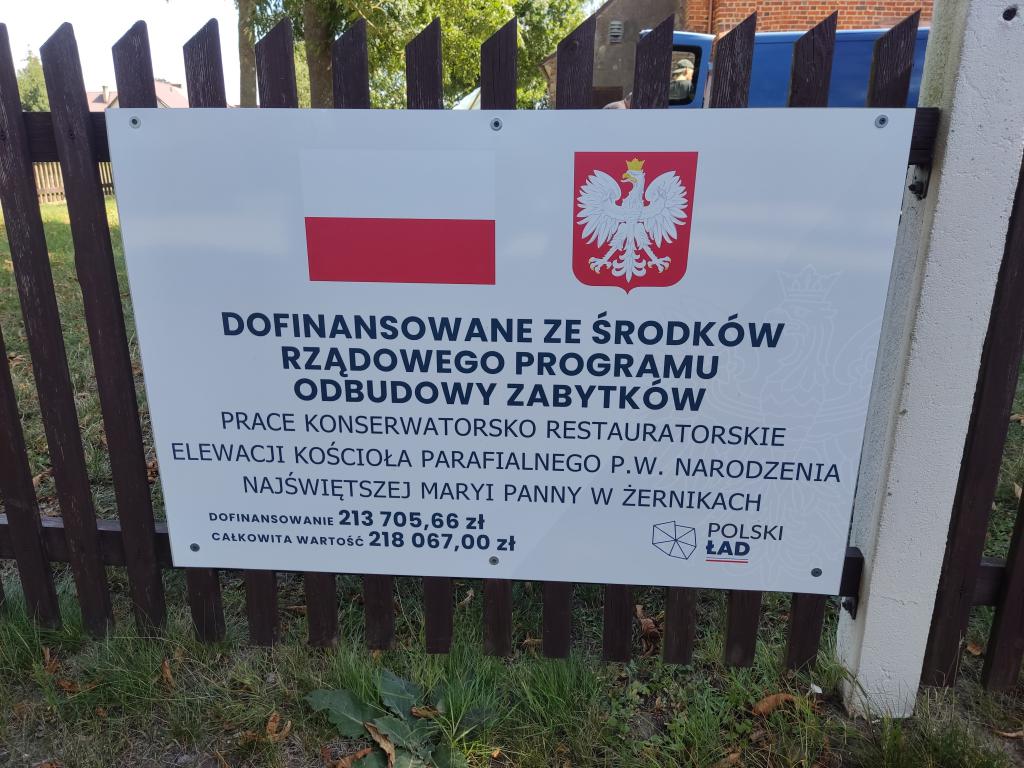 Gmina Janowiec Wielkopolski otrzymała dofinansowanie w wysokości 213.705,66 zł co stanowi 98 % całkowitej wartości zadania) w ramach pierwszej edycji Rządowego Programu Odbudowy Zabytków na realizację inwestycji pn. : „Prace konserwatorsko restauratorskie elewacji kościoła parafialnego p.w. narodzenia Najświętszej Maryi Panny w Żernikach”. Rządowy Program Odbudowy Zabytków ma na celu odbudować blask zabytków w Polsce. Program realizowany jest poprzez promesy inwestycyjne udzielane przez BGK.