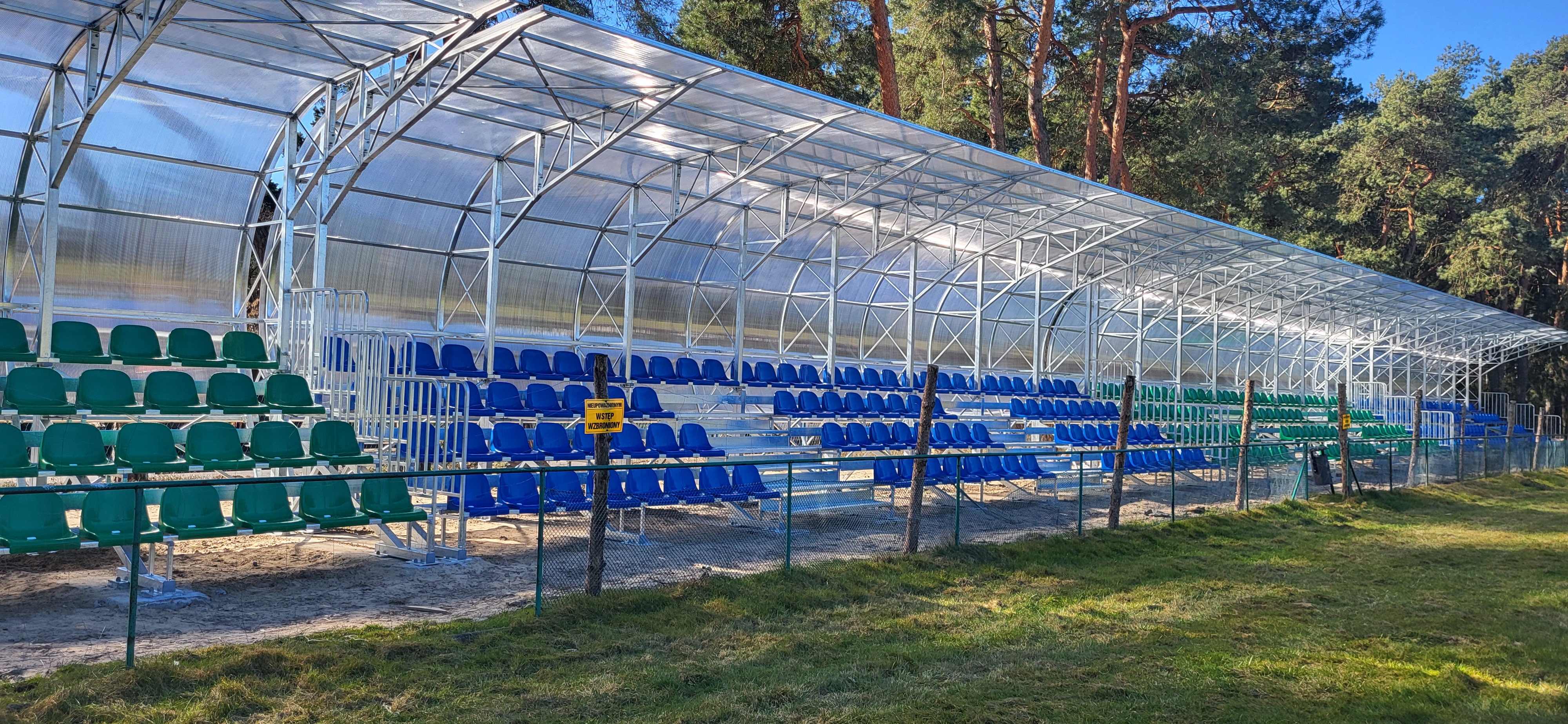 - rozebraniu istniejących trybun i wybudowaniu nowych trybun systemowych.