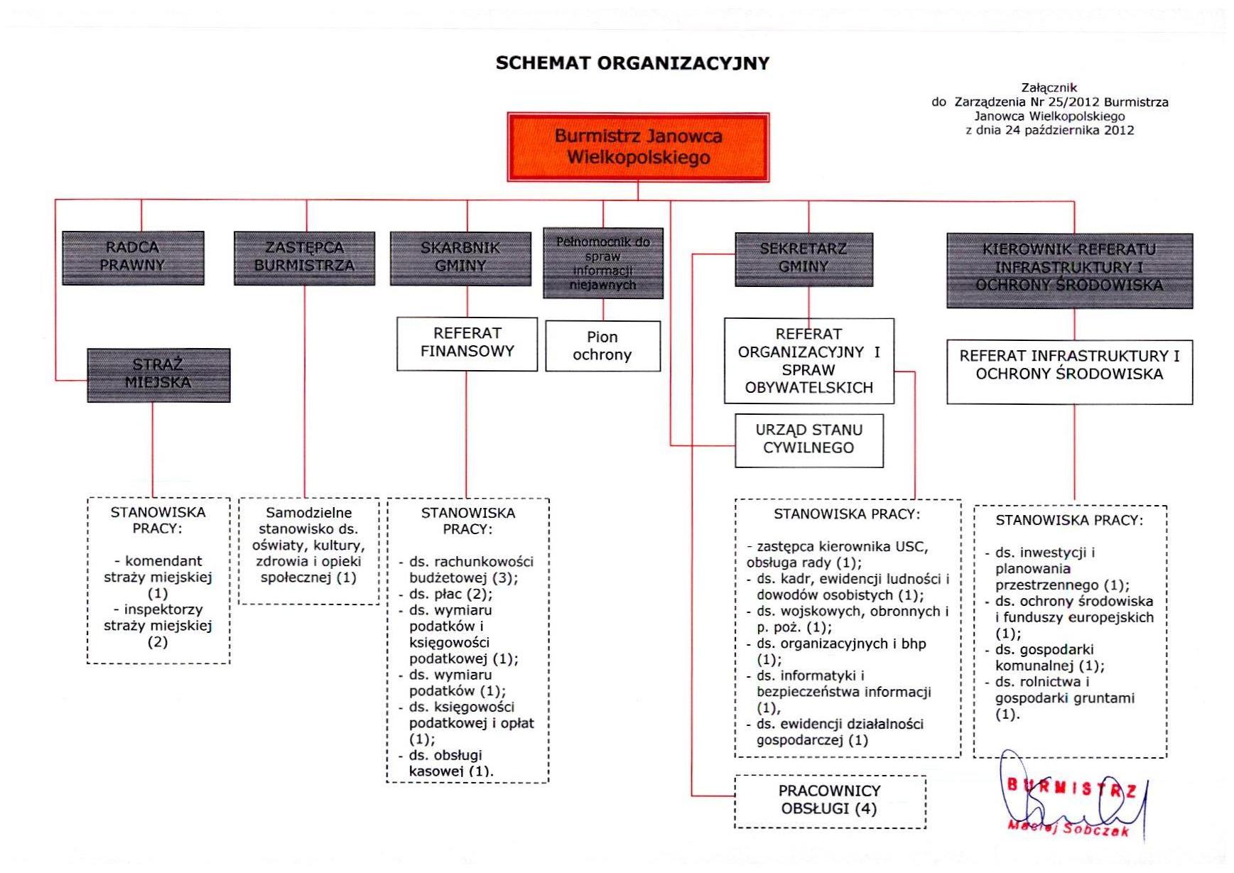 Schemat_organizacyjny.jpg 0.22MB Zarządzenie OR.120.4.2013 w sprawie zmian w Regulaminie Organizacyjnym Urzędu Miejskiego w Janowcu Wielkopolskim