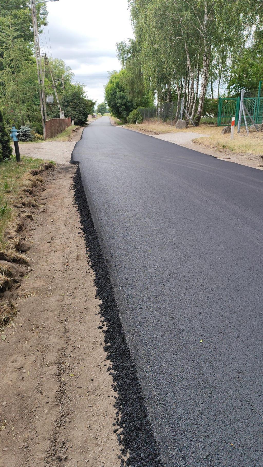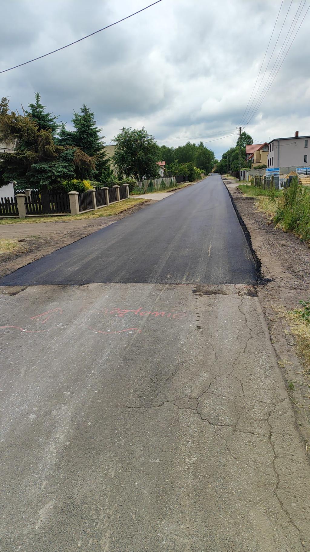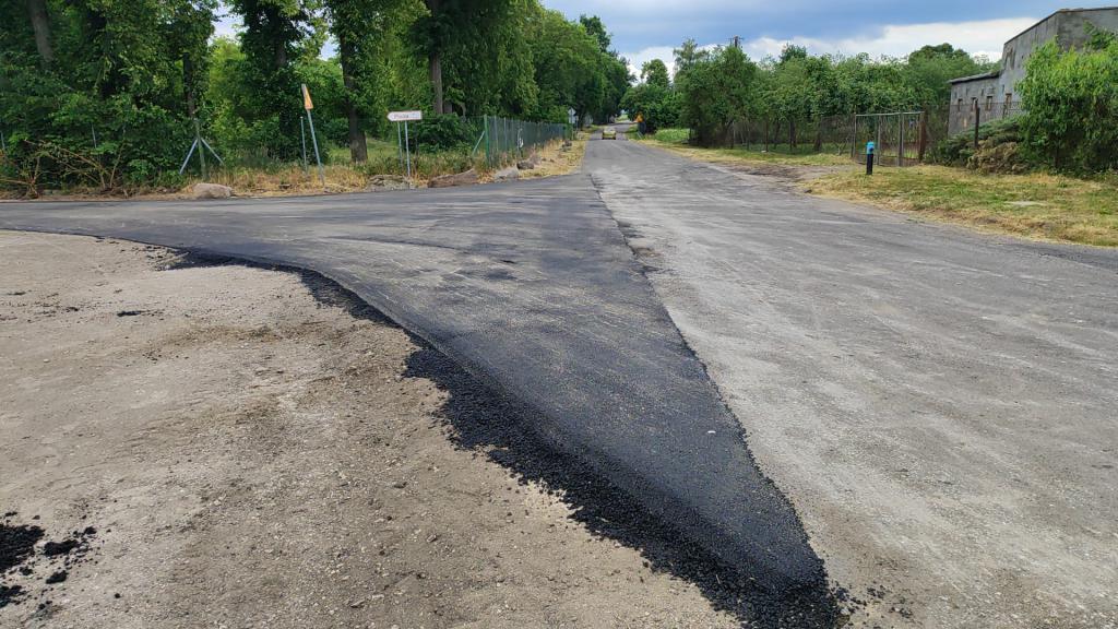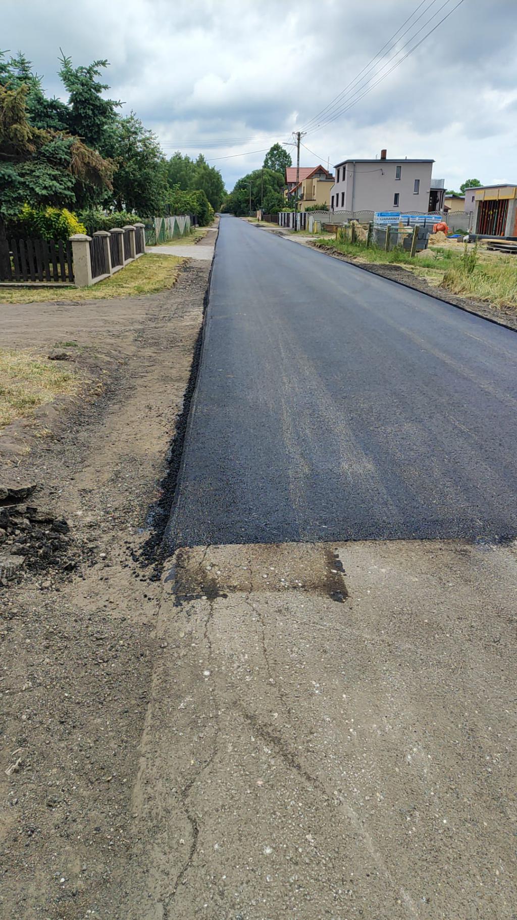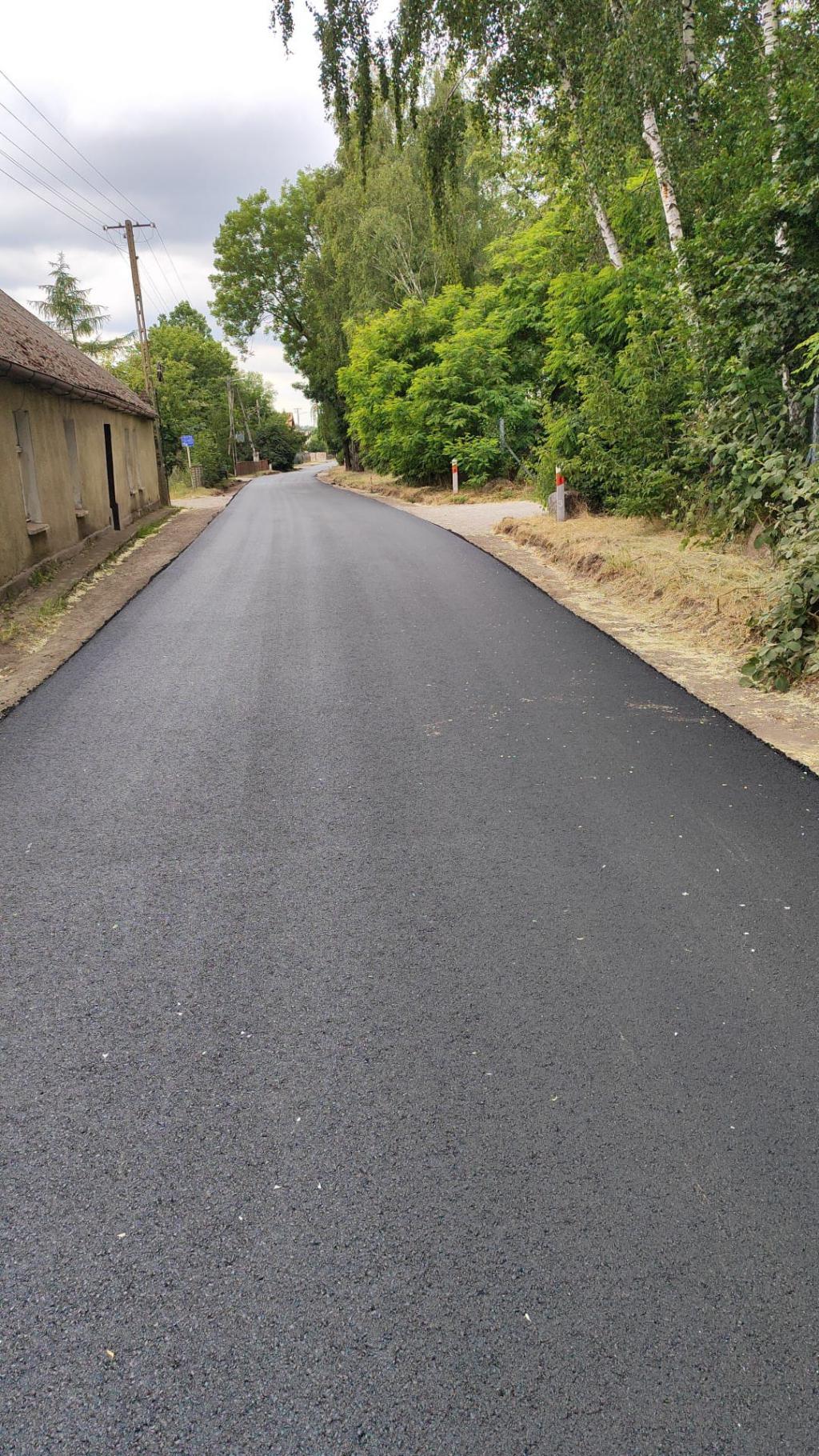 Planowane efekty: remont drogi zostanie wykonany na odcinku 380 m, obejmuje wykonanie nawierzchni bitumicznej, skropienie podbudowy i warstwy wiążącej emulsją asfaltową, podbudowę wykonaną z kruszywa łamanego stabilizowanego mechanicznie, zjazdy do posesji bitumiczne na podbudowie tłuczniowej.