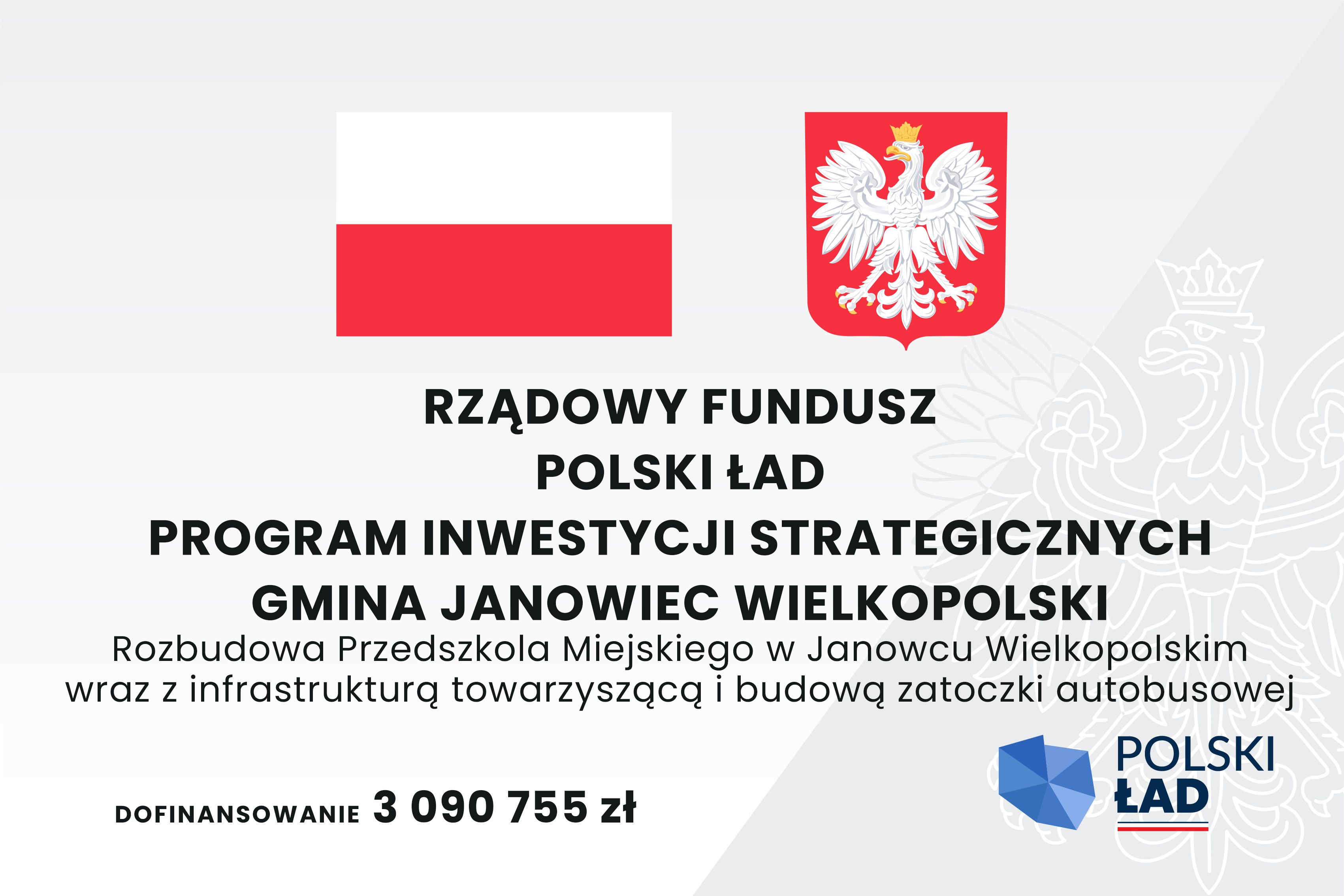 Gmina Janowiec Wielkopolski otrzymała dofinansowanie w ramach Rządowego Funduszu Polski Ład Program Inwestycji Strategicznych na realizację zadań pn.: